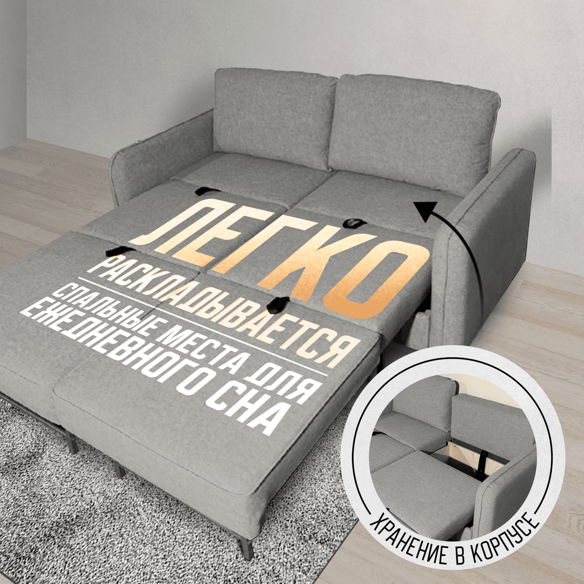 BUSHE Диван-кровать COMFO, механизм Раскладной, угол универсальный, серый 155*87*85