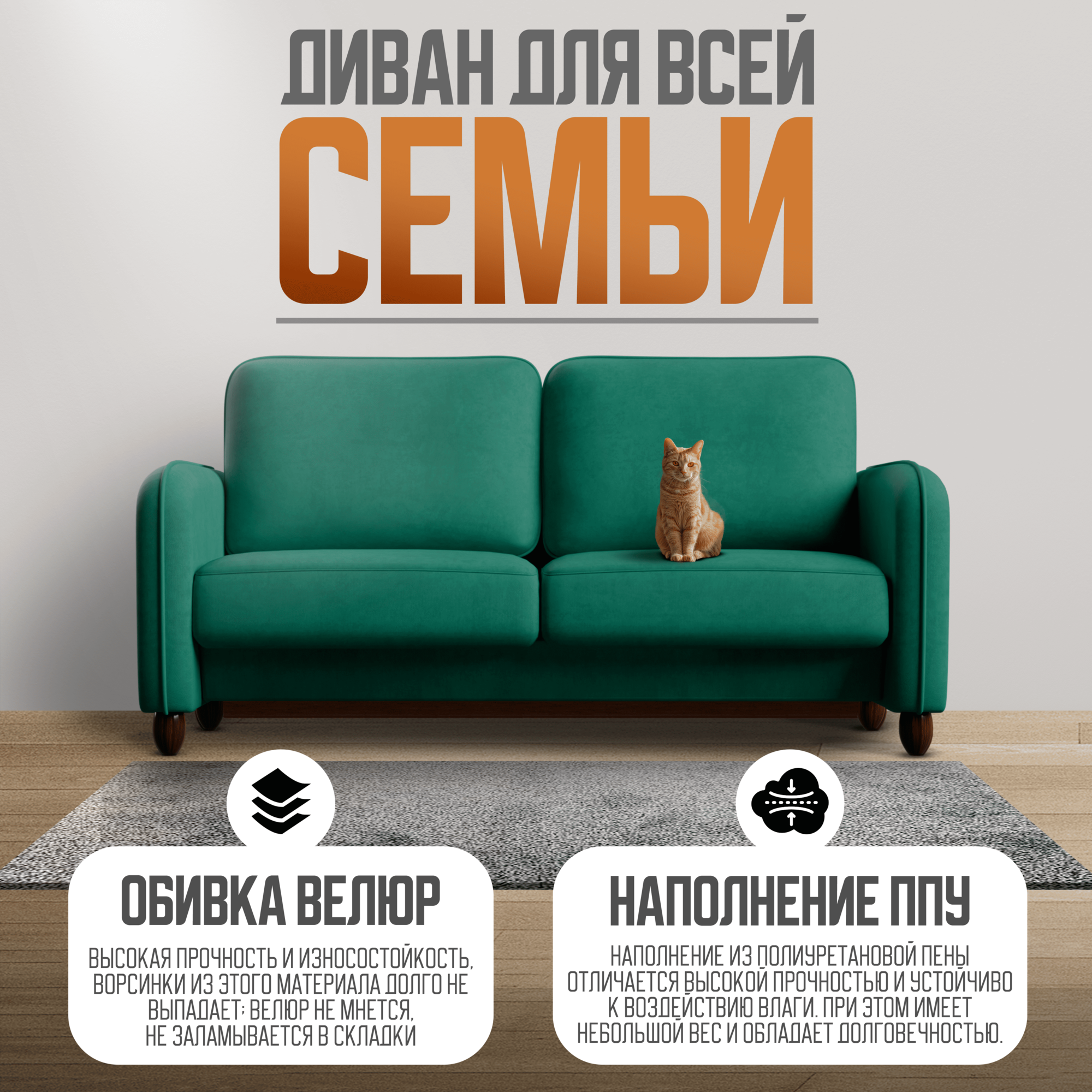 Диван-кровать прямой BUSHE 2-местный, размер: 87х175, спальное место: 150х192, обивка: велюр, зеленый