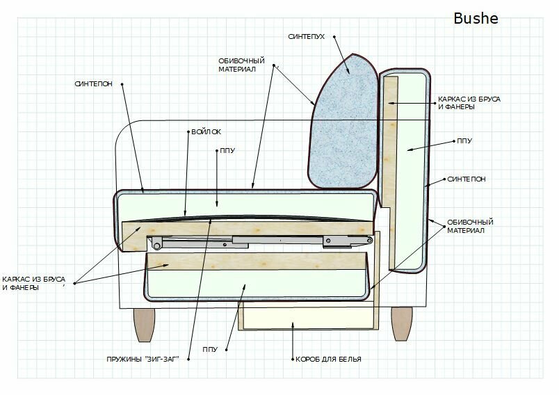 BUSHE Диван-кровать COMFO, механизм Раскладной, синий 155*87*85