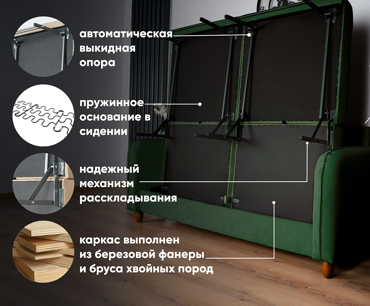 BUSHE Диван-кровать COMFO, механизм Раскладной, угол универсальный, зеленый 155*87*85