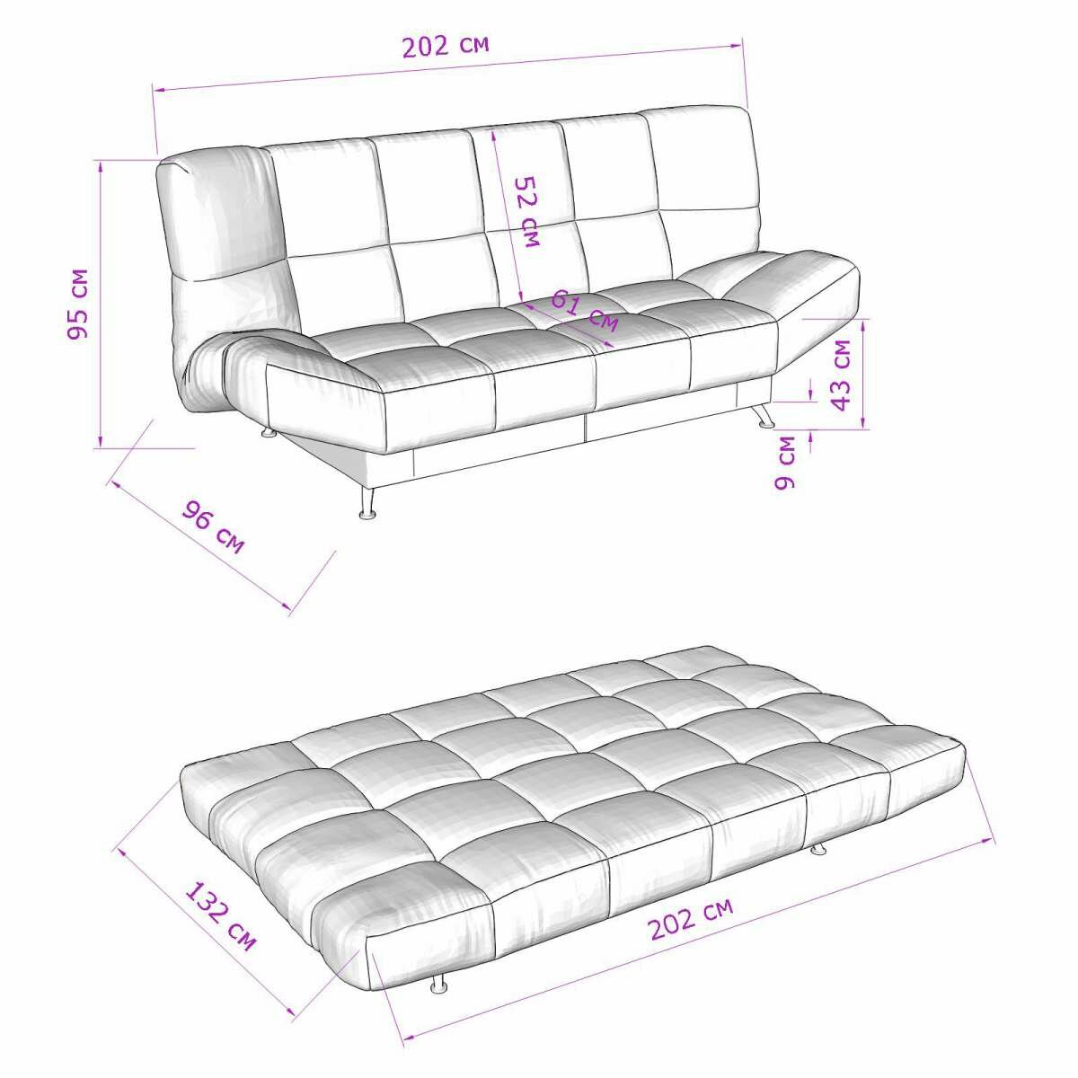 Диван-кровать раскладной Прямой, Клик-кляк, Беспружинный, 132х202 Палермо, велюр темно-серый интересное: