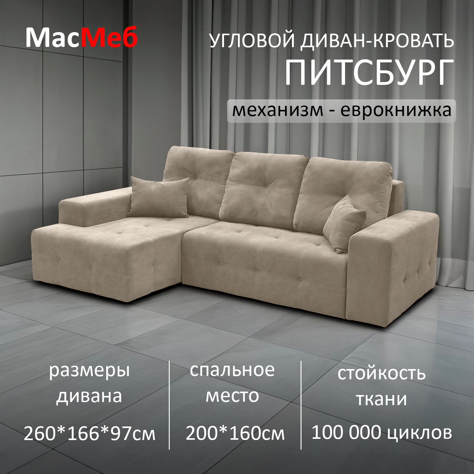 Купить Диван угловой МасМеб Питсбург, цвет бежевый, Левый угол, еврокнижка