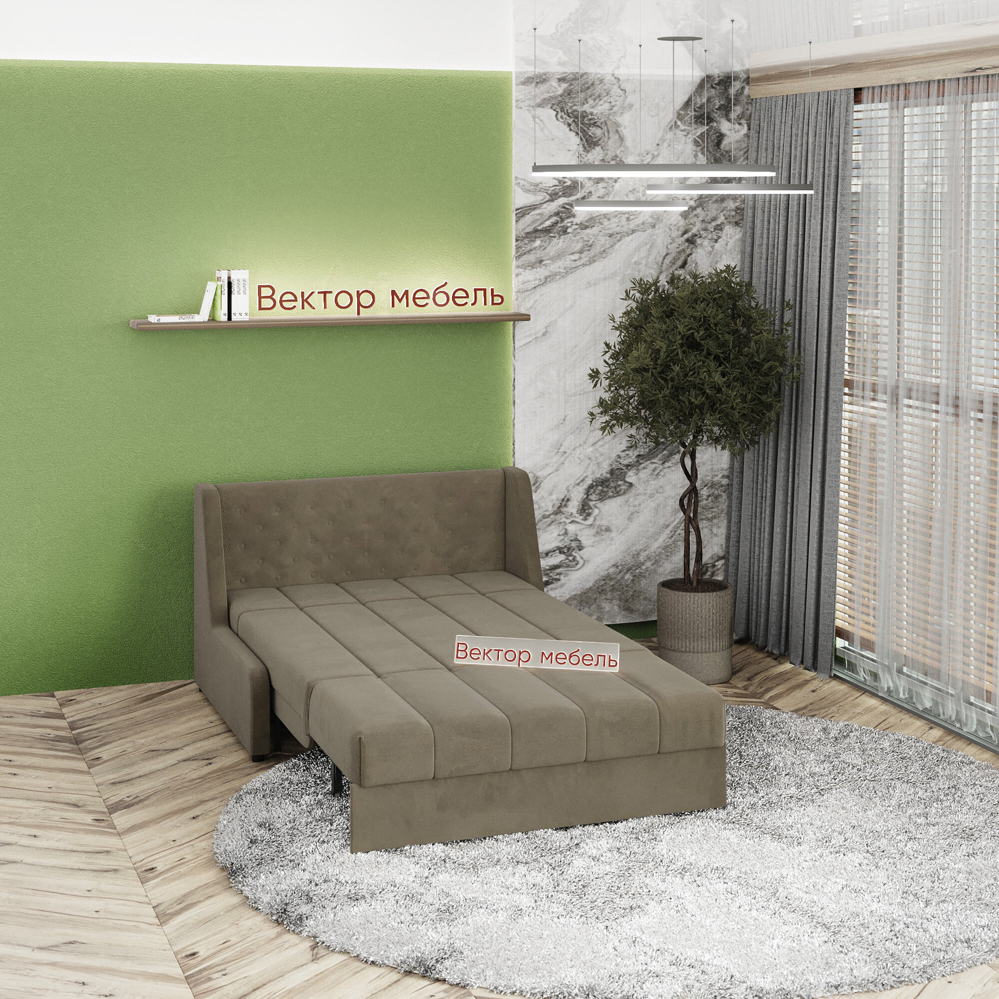 Диван-кровать раскладной Прямой на металлокаркасе, Аккордеон, ортопедический, 140х200, Вернисаж, велюр коричневый