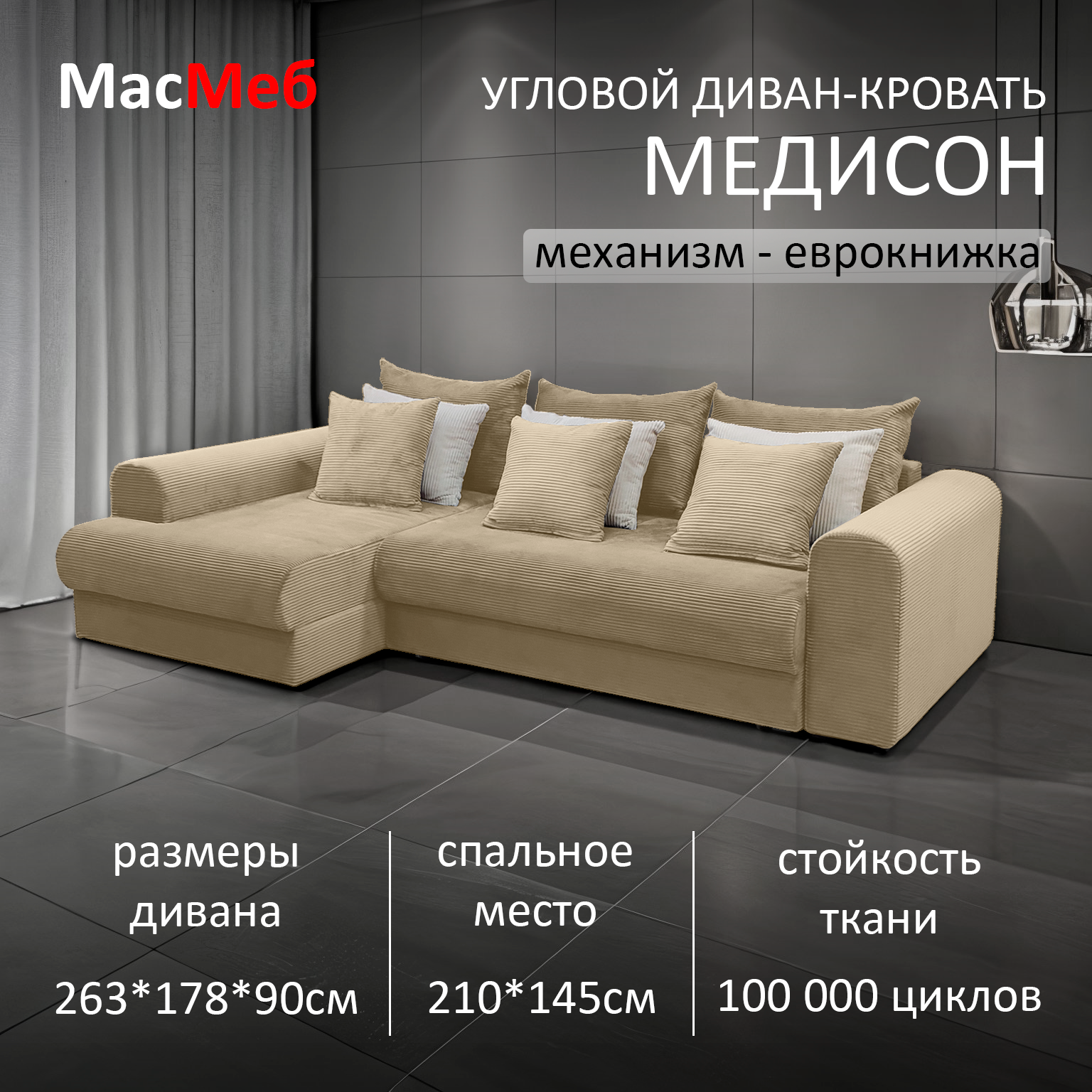 Купить Диван угловой МасМеб Медисон, цвет бежевый, Левый угол, еврокнижка