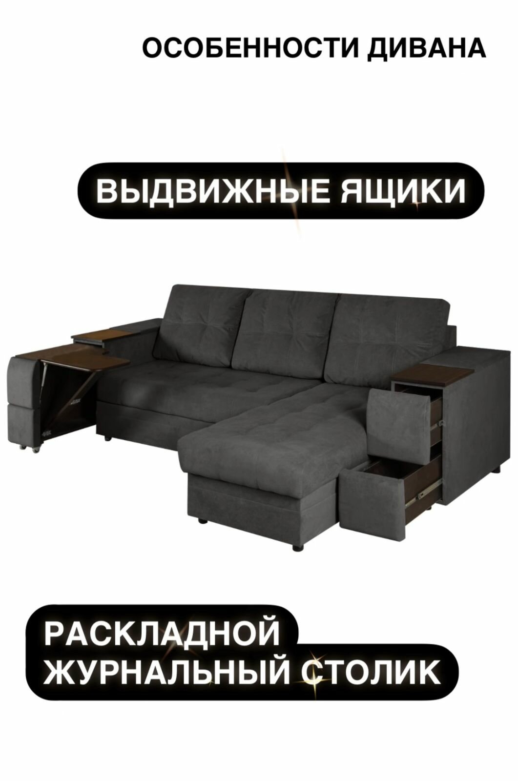 Диван ООО 21 век Плюс Атлант "Бар", раскладной, с ящиками, угловой, велюровая обивка, тёмно-серый интересное: