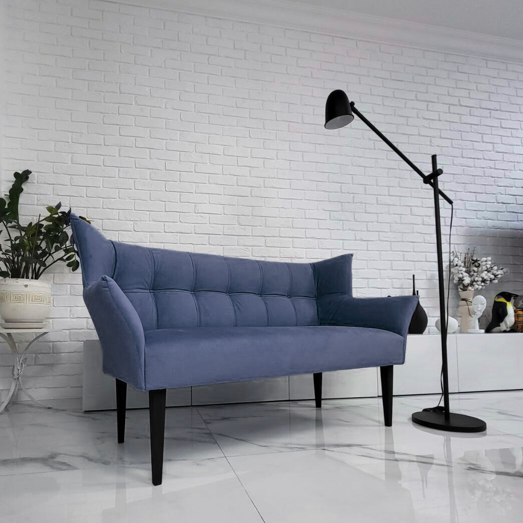 Купить Диван прямой "Бьянка", искусственный велюр, синий, 145x65x70 см