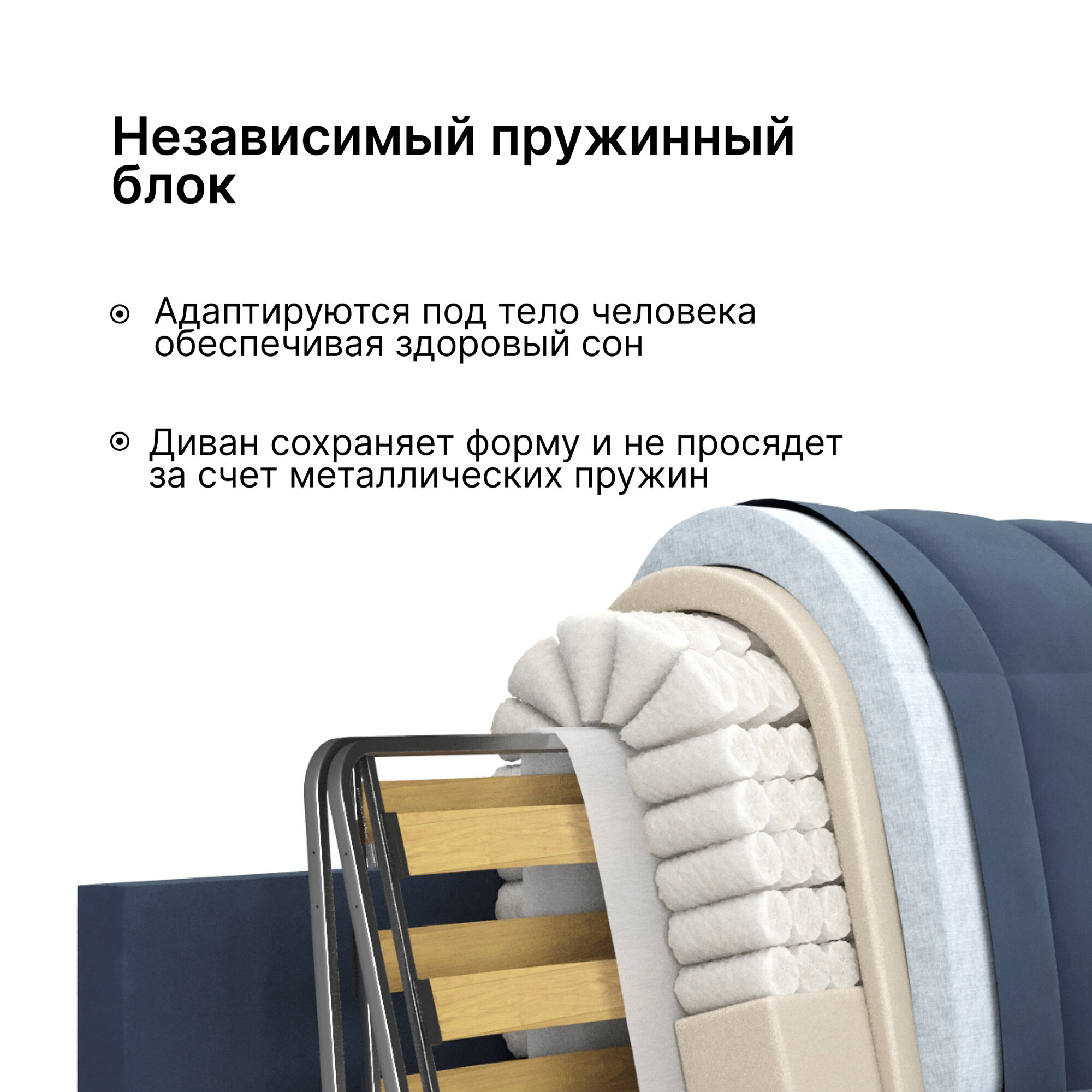 Диван-кровать 160х200 аккордеон с независимым пружинным блоком на металлокаркасе синий Истван Лайт