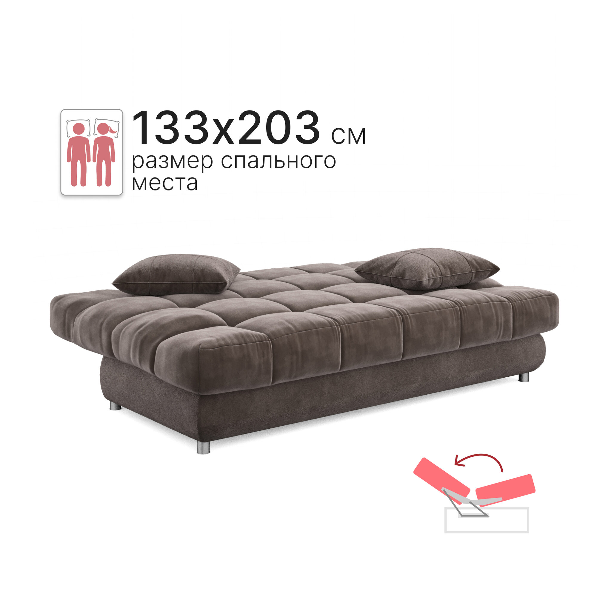 Купить Диван-кровать раскладной Лиссабон люкс на металлокаркасе, Книжка, ортопедический, 133х203, велюр коричневый