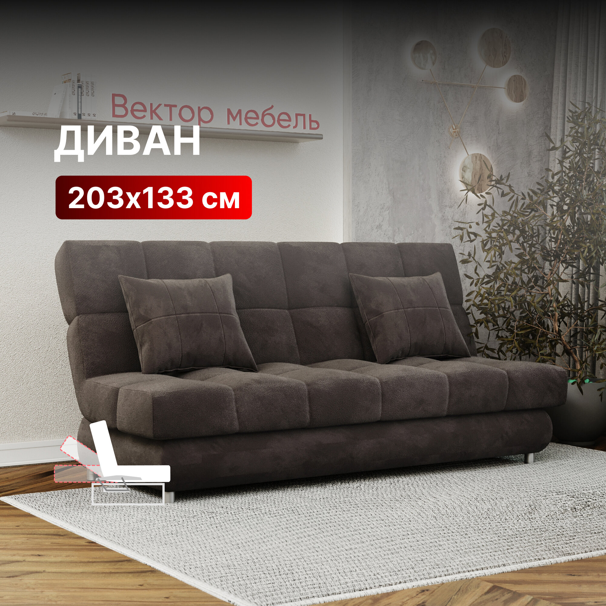 Диван-кровать раскладной Прямой без подлокотников на металлокаркасе, Книжка, ортопедический, 133х203, велюр темно-серый