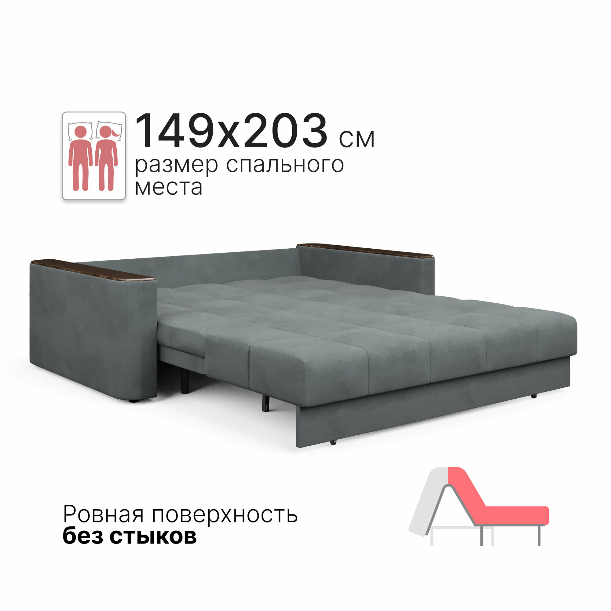 Купить Диван-кровать раскладной Прямой на металлокаркасе, Аккордеон, ортопедический, 150х200, Валенсия, велюр темно-серый