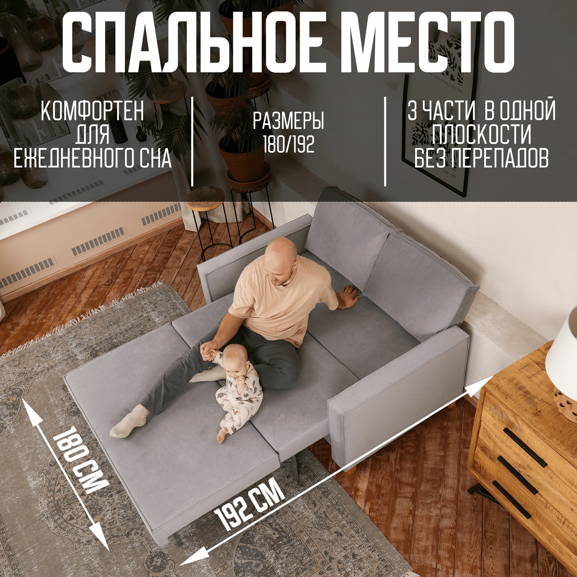 СохранитьQuadro Диван-кровать COMFO, механизм Раскладной, серый 205*87*87 интересное: