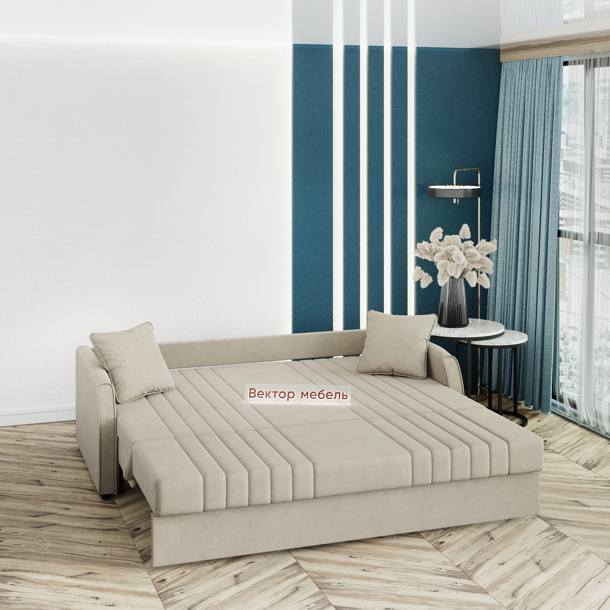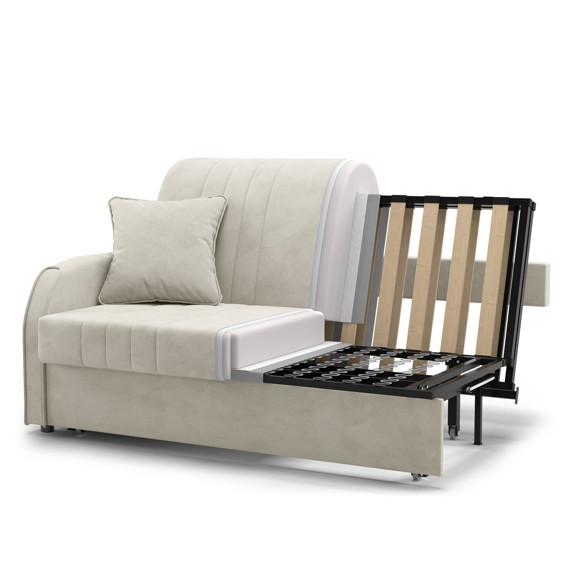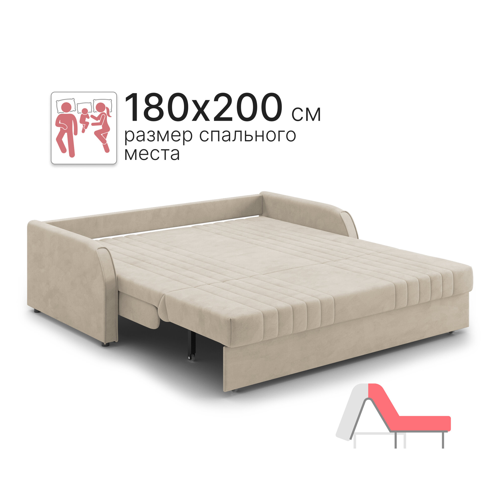 Диван-кровать раскладной Турин Аккордеон, ортопедический, 180х200 спальное место, велюр бежевый интересное: