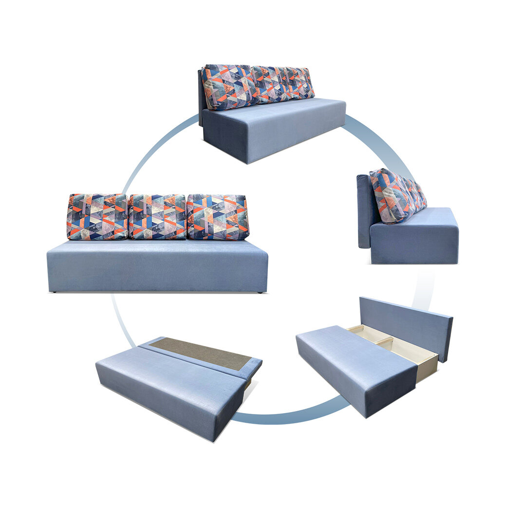 СохранитьПрямой раскладной диван “Каир” 187х87х85 см, механизм еврокнижка, голубой велюр интересное: