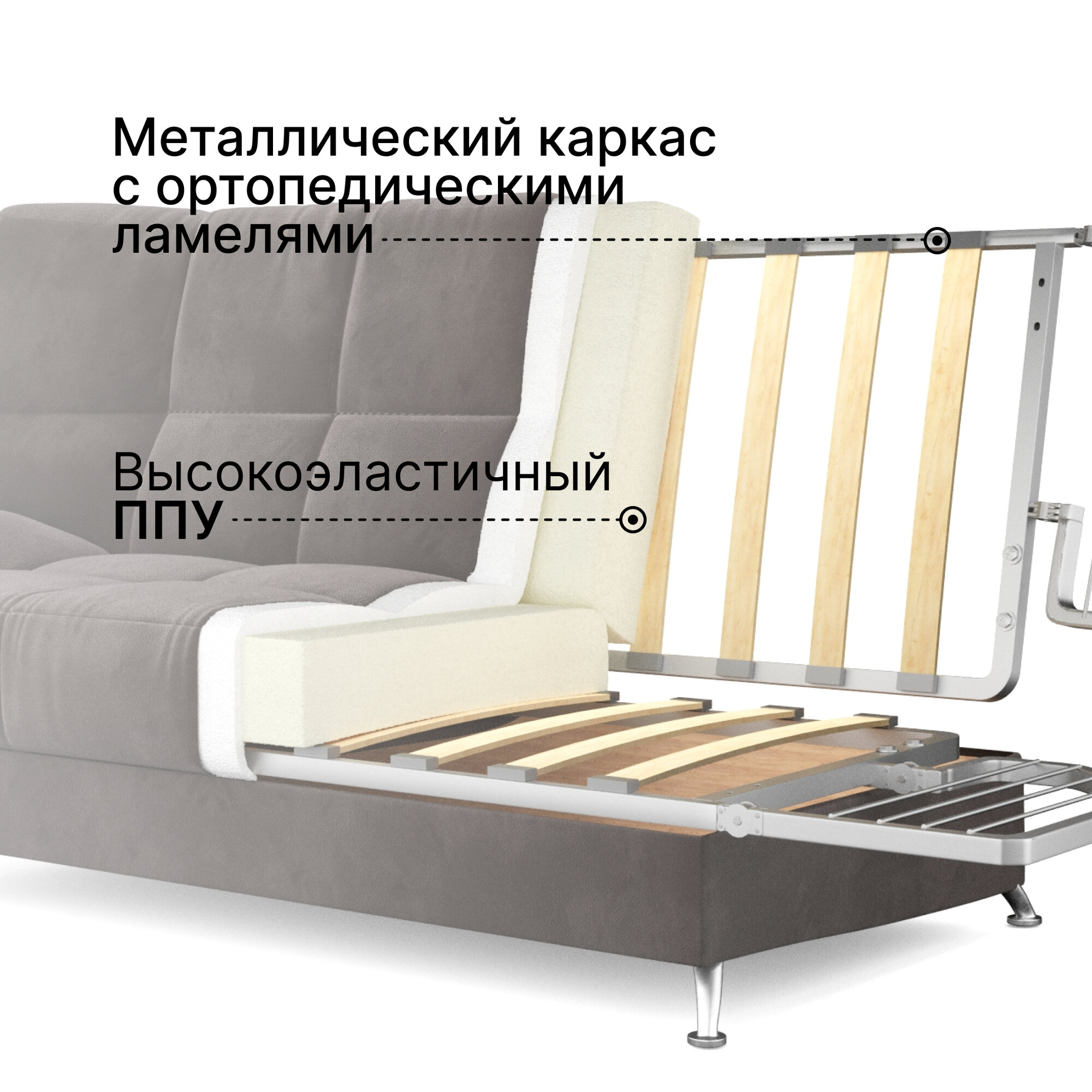 Диван-кровать раскладной Прямой, Беспружинный, 132х202 спальное место, Лион, велюр Светло-серый