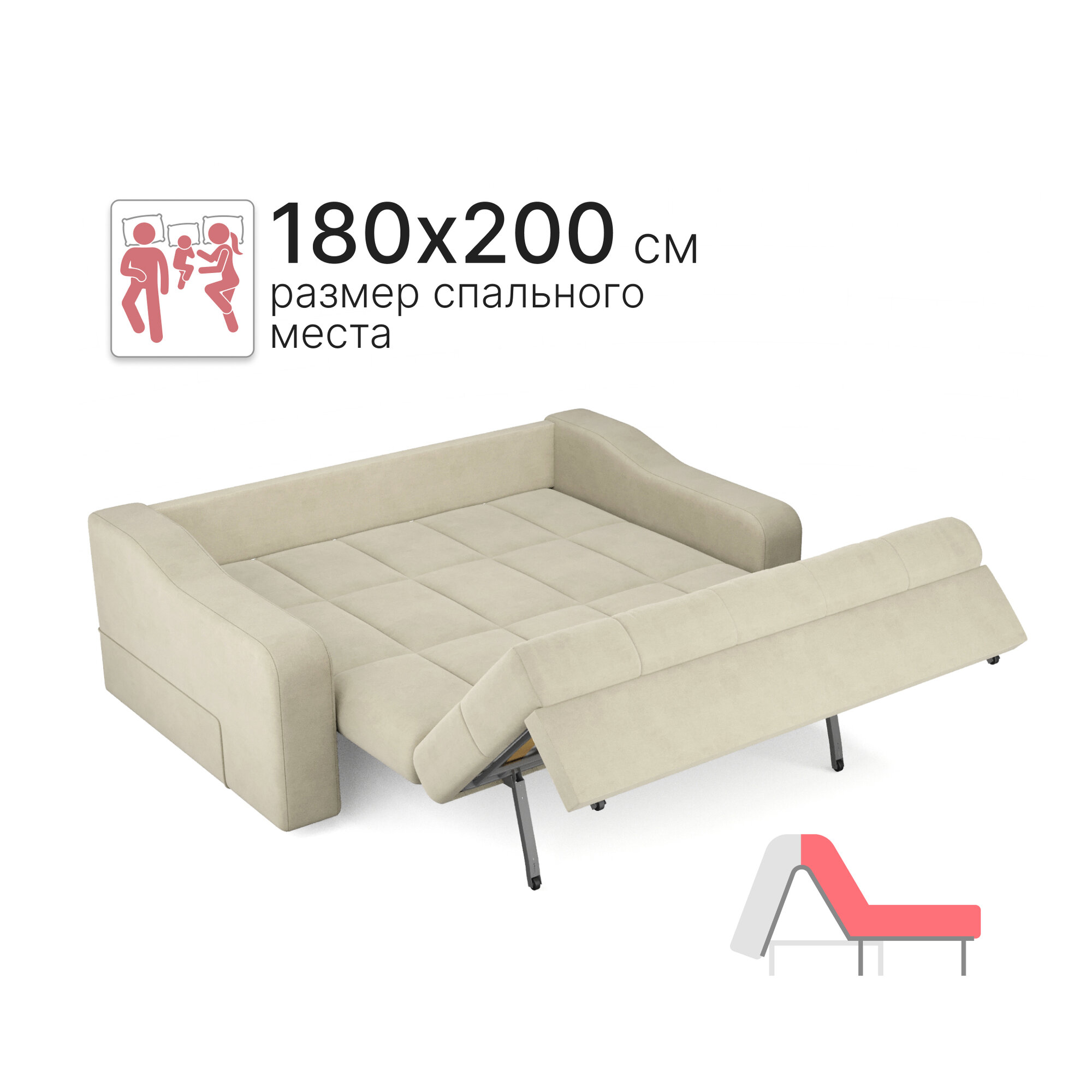 СохранитьДиван-кровать раскладной Прямой, Аккордеон, независимый пружинный блок, 180х200 спальное место, Стелла, велюр бежевый интересное: