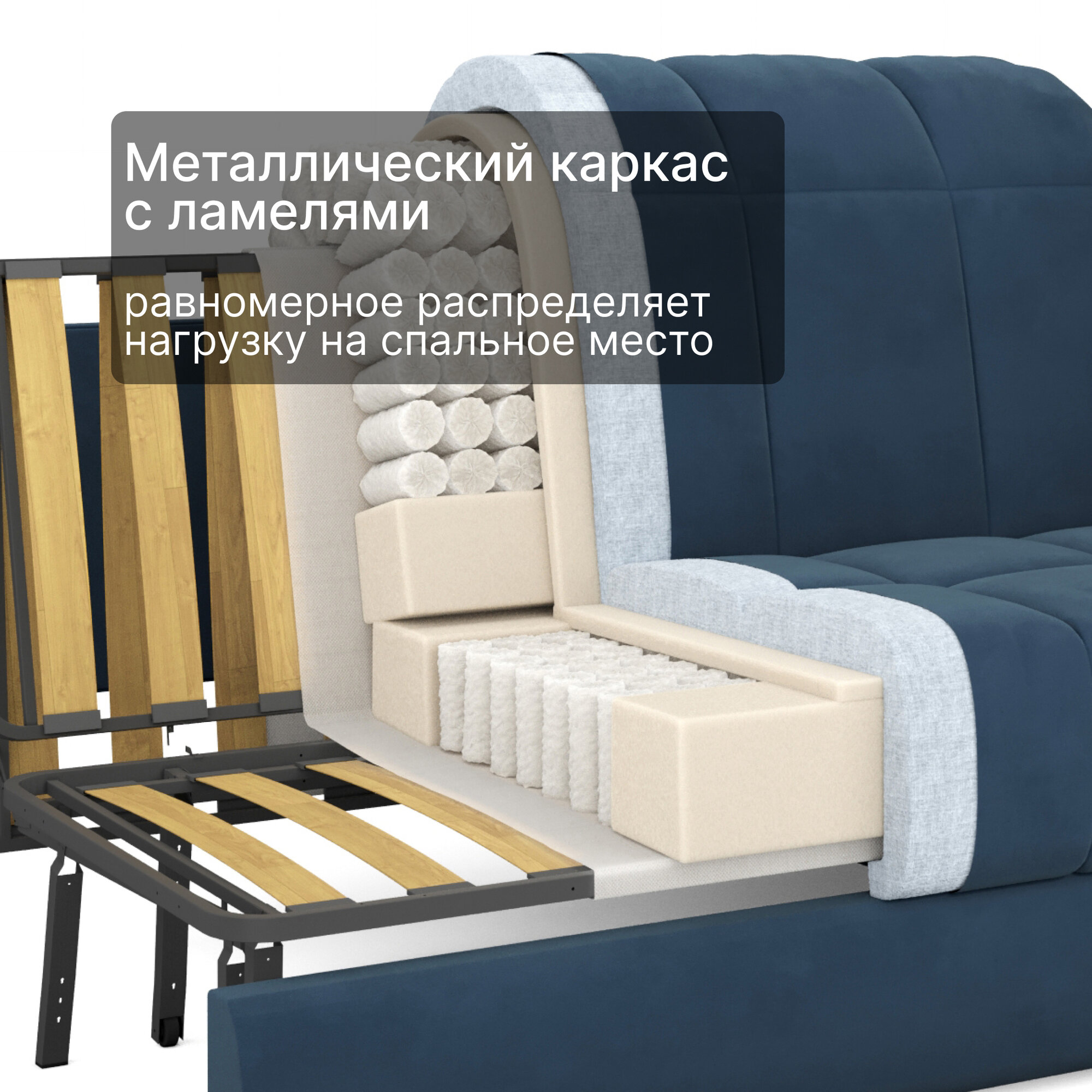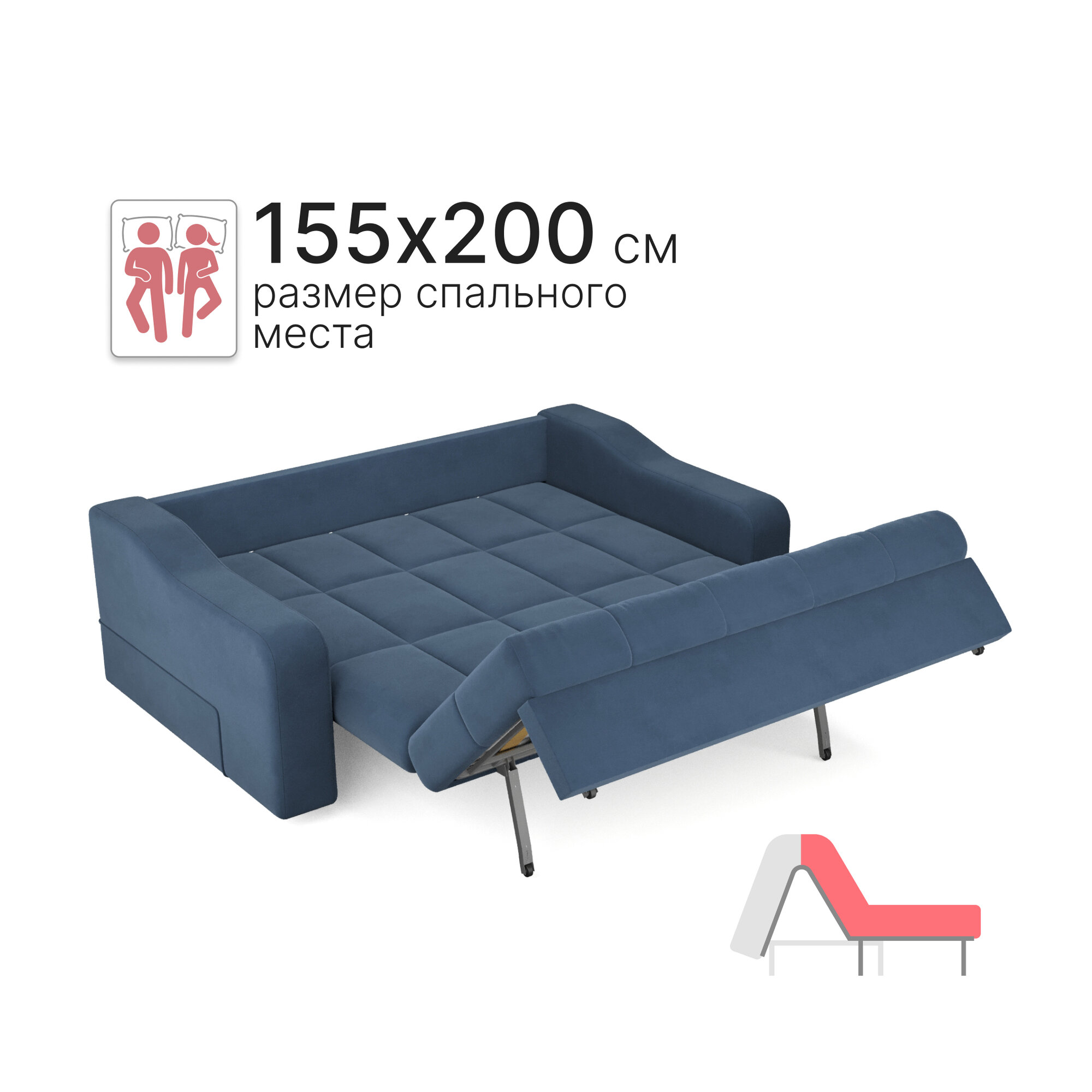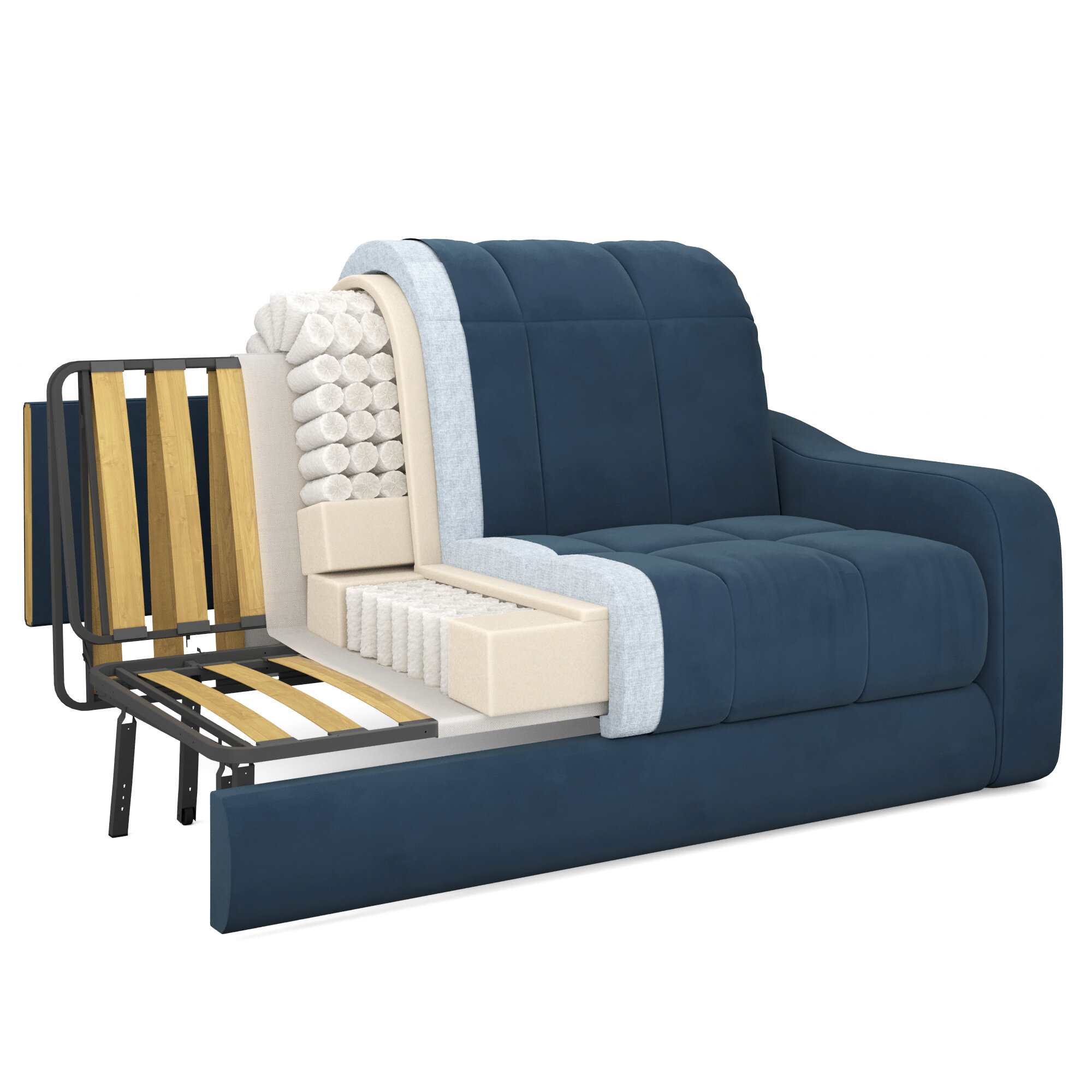 Диван-кровать раскладной, аккордеон, с независимыми пружинами , Синий, 140х200 спальное место