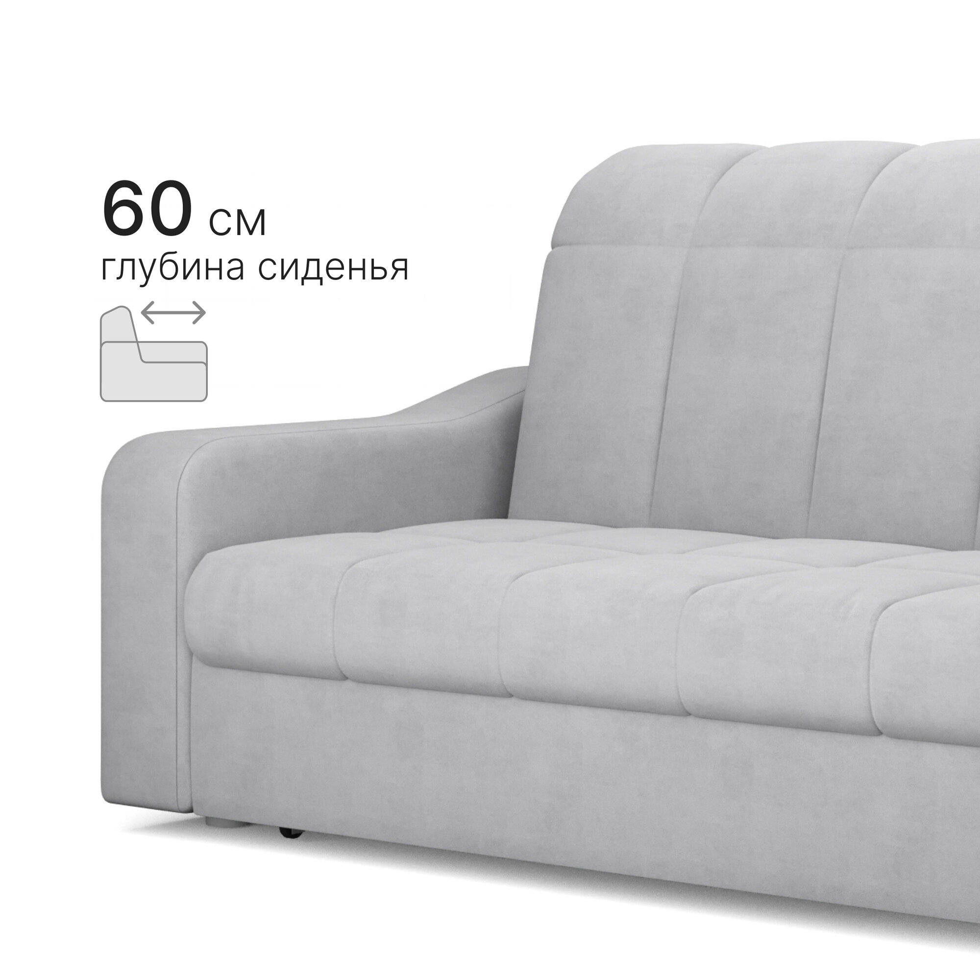 Диван-кровать раскладной Прямой, Аккордеон, Независимые пружины, 140х200 спальное место, Стелла, велюр светло-серый