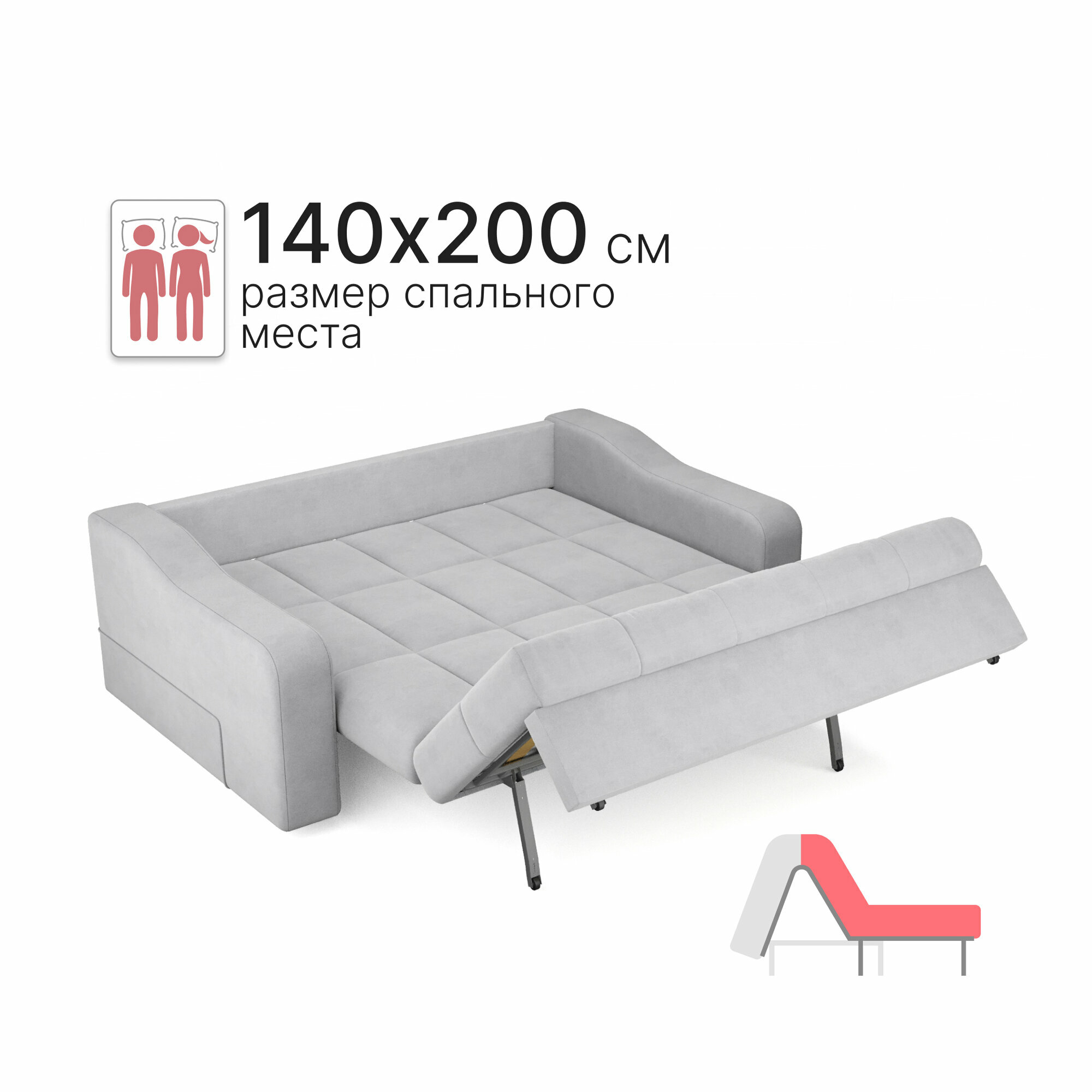 Диван-кровать раскладной Прямой, Аккордеон, ортопедический, 140х200 спальное место, Стелла, велюр светло-серый