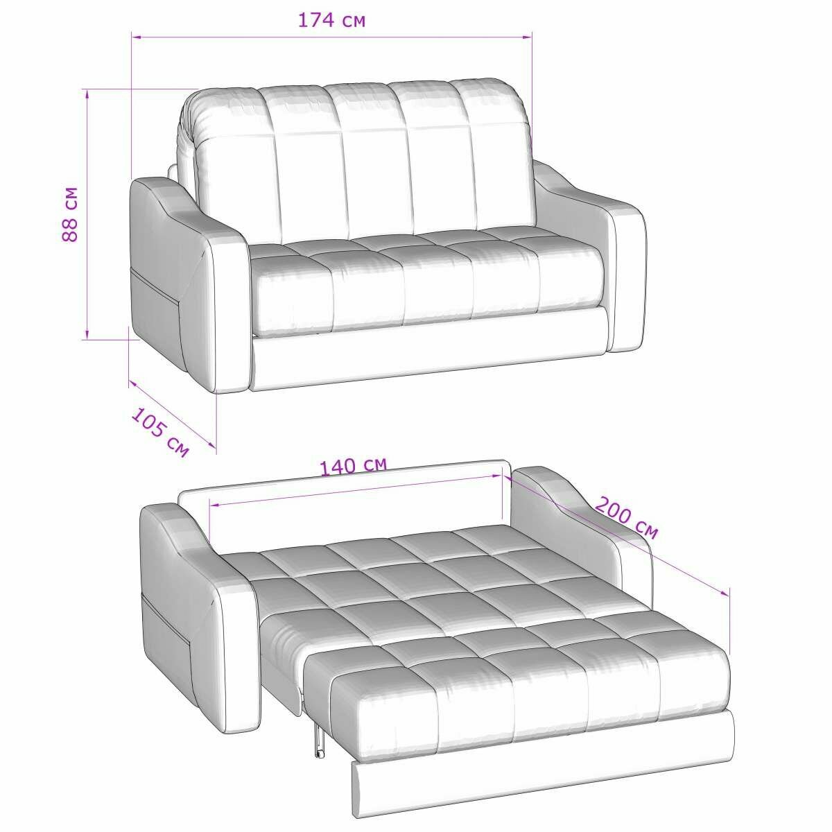 Диван-кровать раскладной Прямой, Аккордеон, Независимые пружины, 140х200 спальное место, Стелла, велюр темно-серый