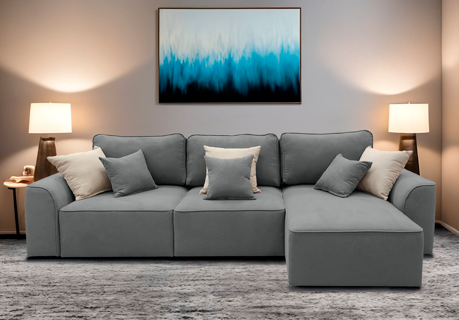 Диван угловой МасМеб Монро, цвет графит, Правый угол, еврокнижка