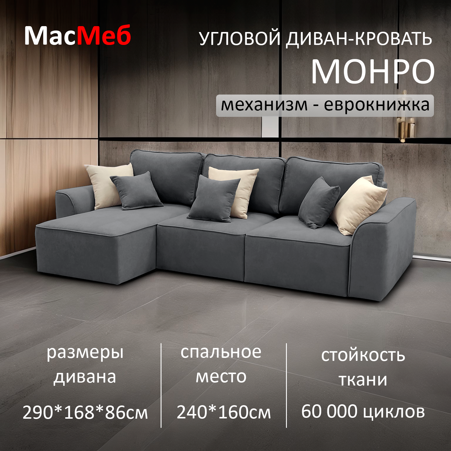 Диван угловой МасМеб Монро, цвет серый, Левый угол, еврокнижка интересное: