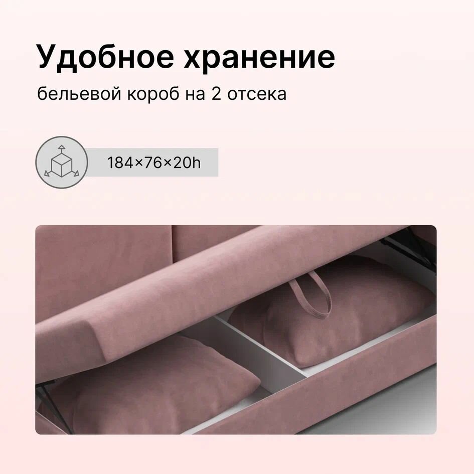 Диван-кровать с ящиком для хранения BOSS 2.0 MINI, еврокнижка, велюр Monolit розовый, 203х100х93 см