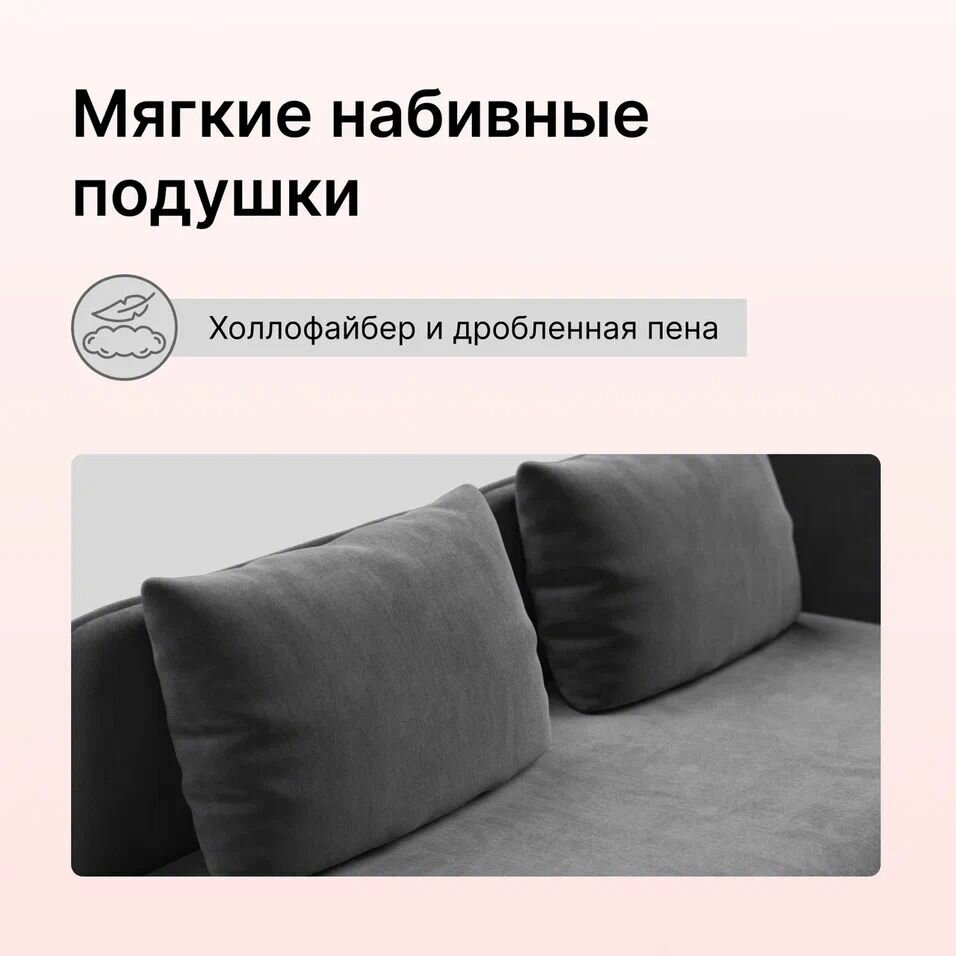 Диван-кровать с ящиком для хранения BOSS 2.0 MINI, еврокнижка, велюр Alkantara серый, 203х100х93 см