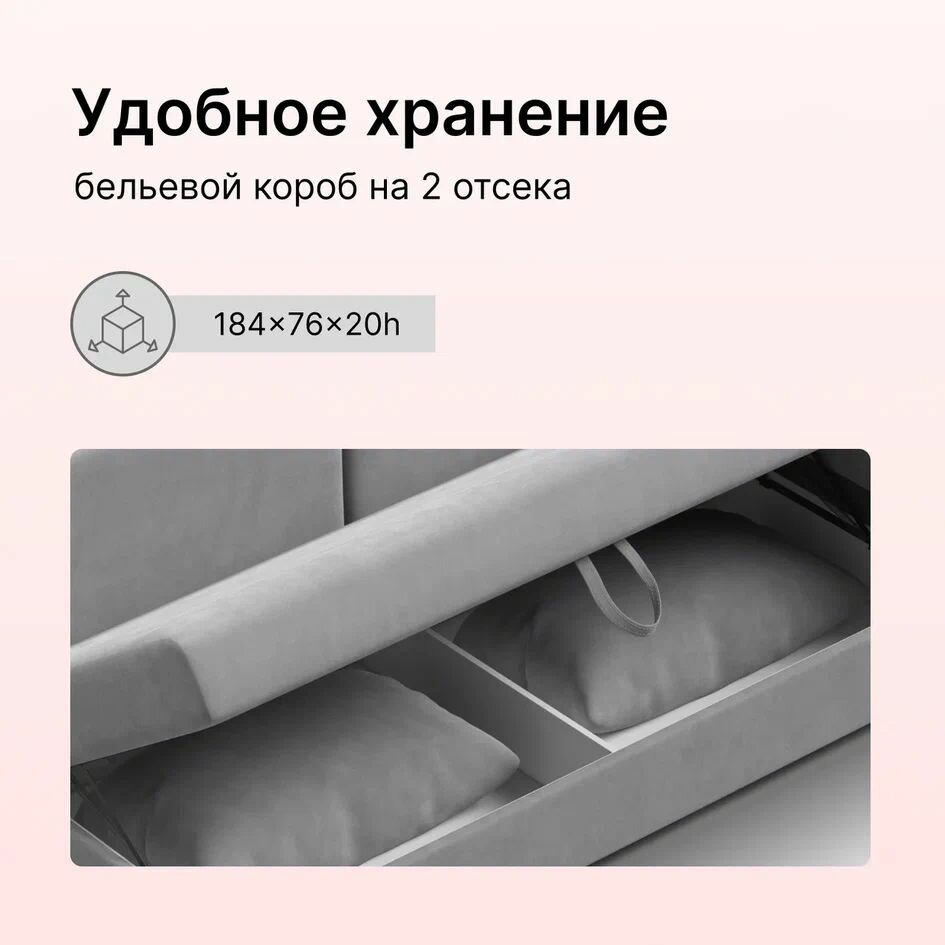 Диван-кровать с ящиком для хранения BOSS 2.0 MINI, еврокнижка, велюр Alkantara серый, 203х100х93 см