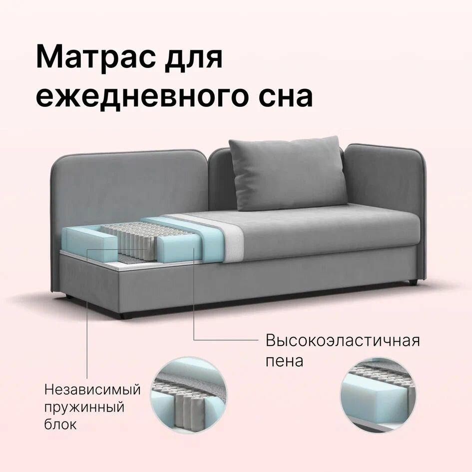 Односпальная тахта Ирис с ящиком для хранения, велюр Monolit серый, 196х89х81 см