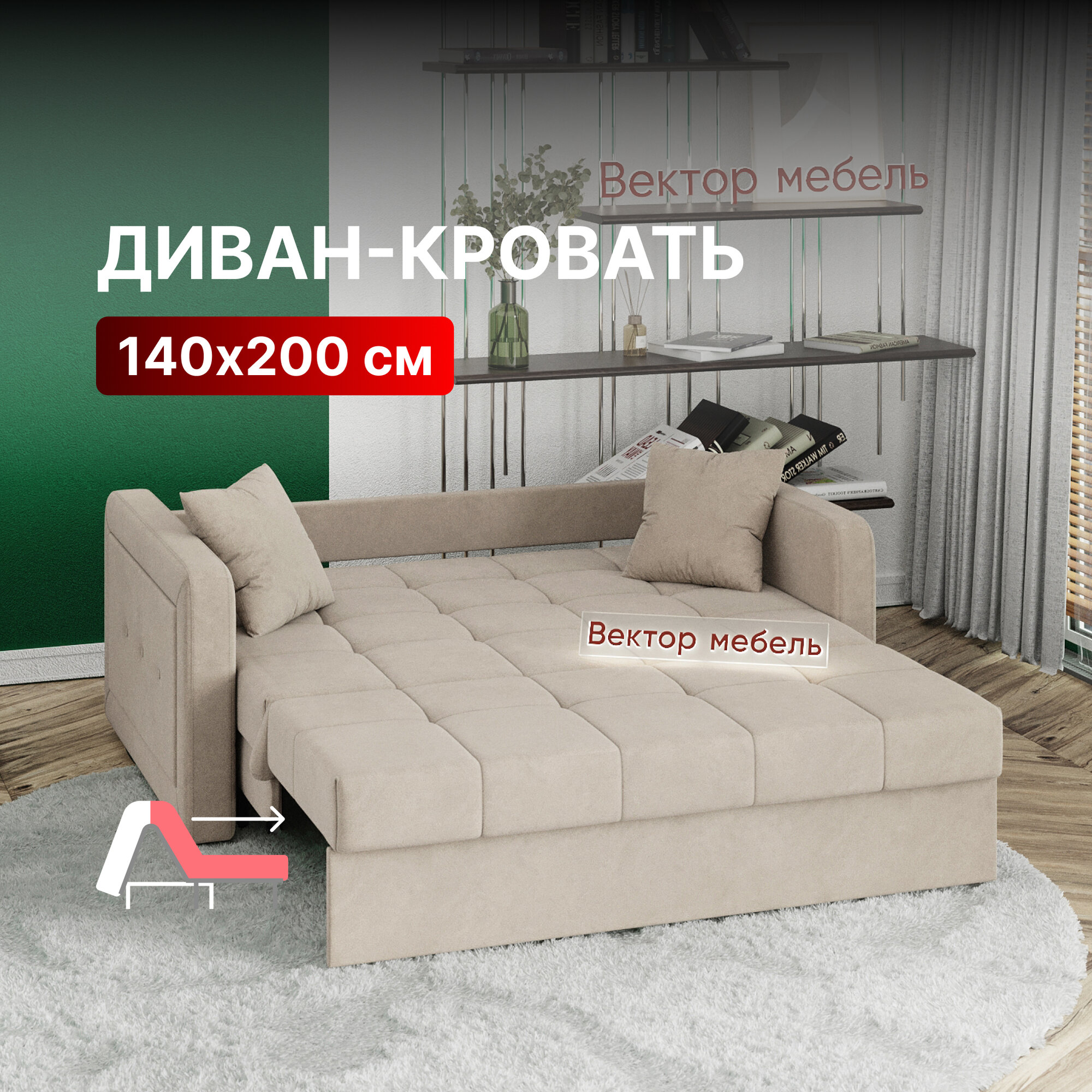 Диван-кровать раскладной Порту Аккордеон, независимые пружины, на металлокаркасе, 140х200 велюр бежевый интересное: