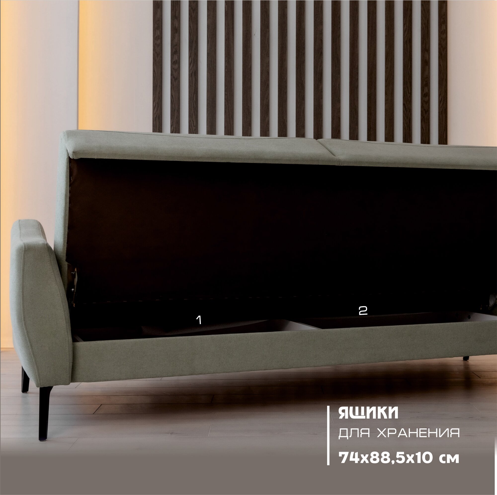 Купить Диван-кровать Лотос, раскладной, еврокнижка, прямой, двуспальный, с ящиком для белья, ткань букле, оливковый