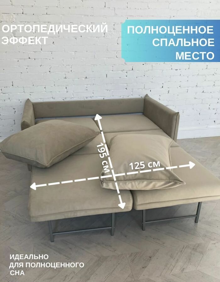 Диван раскладной DIVANSONS Энни, ортопедические свойства, съемный, велюр, 125х195х85 см