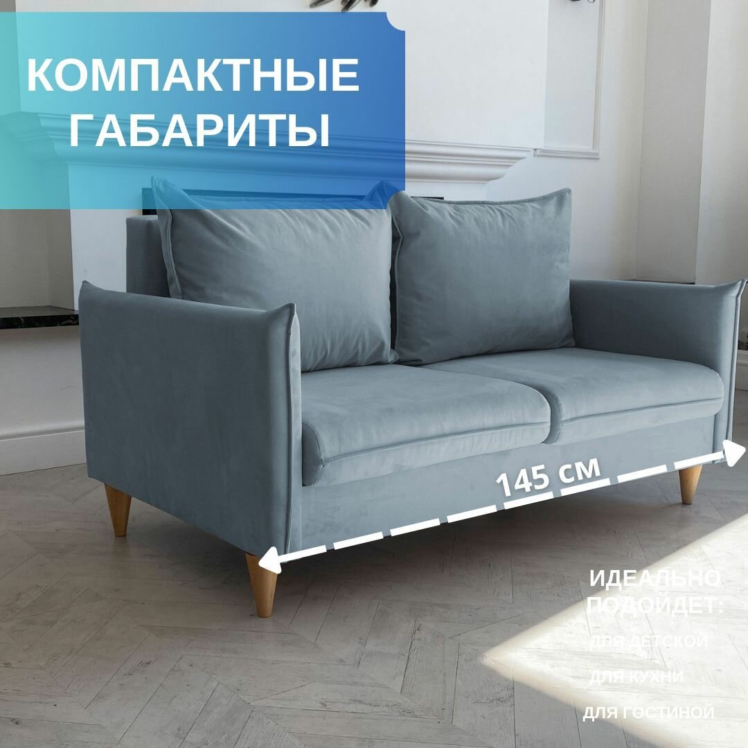 Мини диван Divansons "Энни", раскладной, на ножках, велюр искусственный, голубой