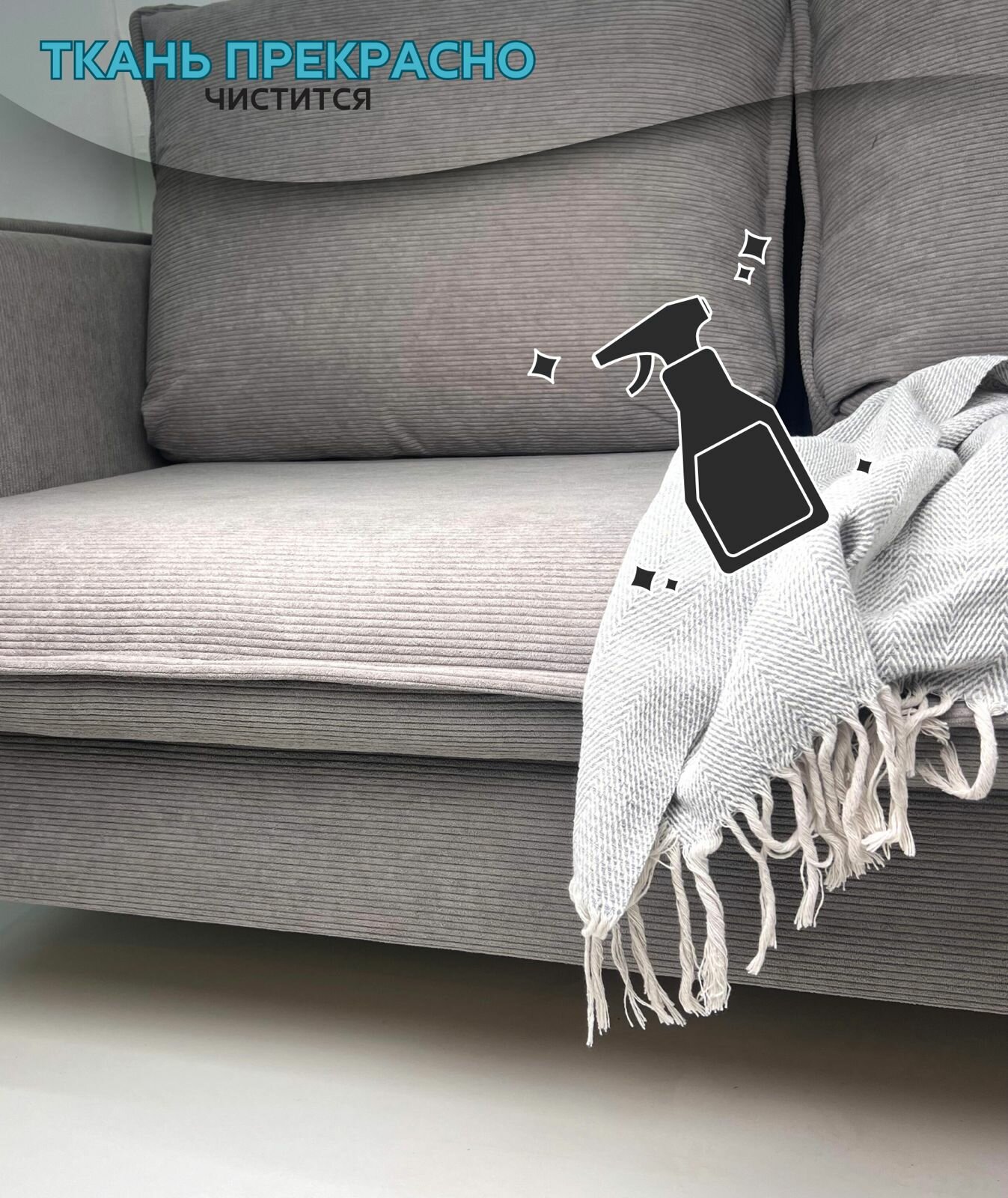 Диван DIVANSONS "Энни", ортопедический, раскладной, съемный, серый, на ножках