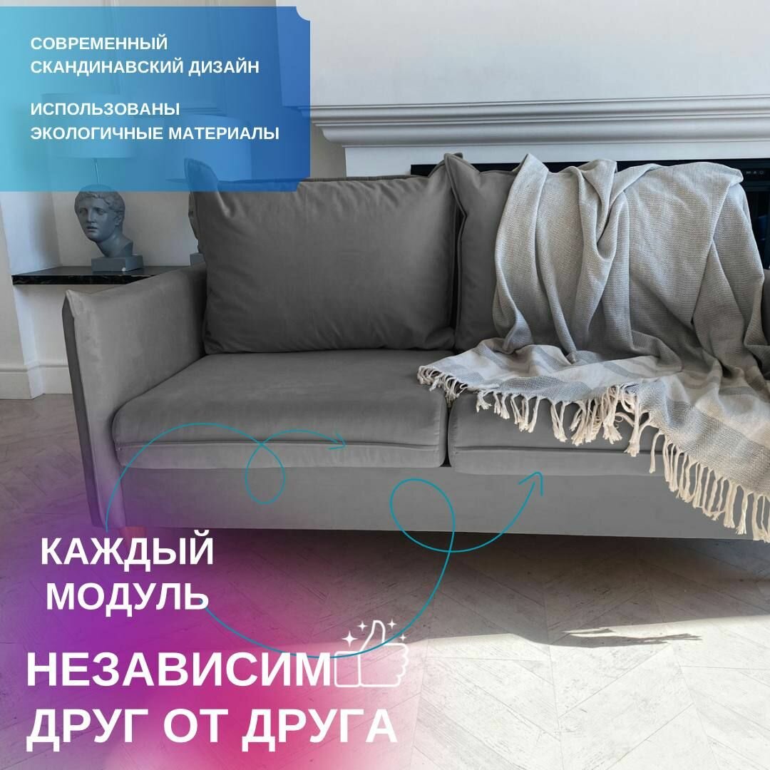 Диван DIVANSONS "Энни", ортопедический, раскладной, съемный, серый, на ножках