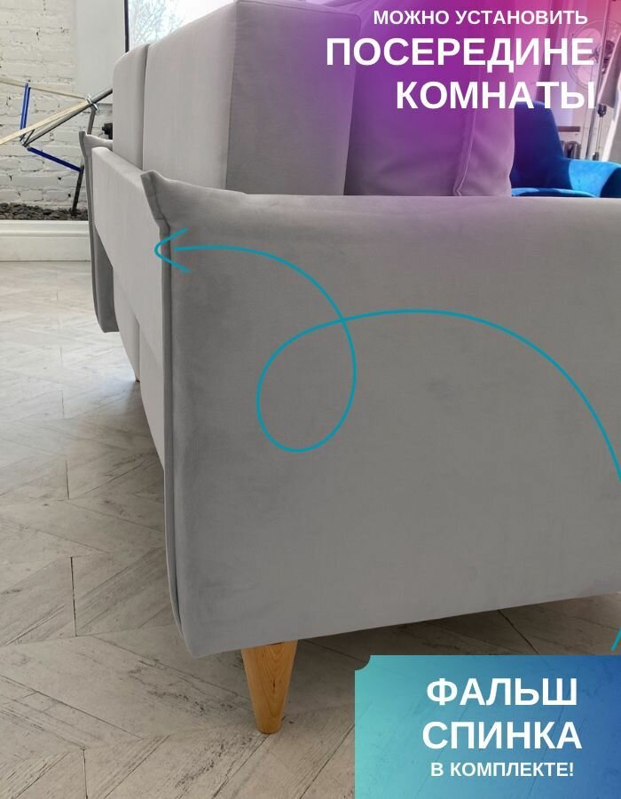 Диван DIVANSONS "Энни", ортопедический, раскладной, съемный, серый, на ножках