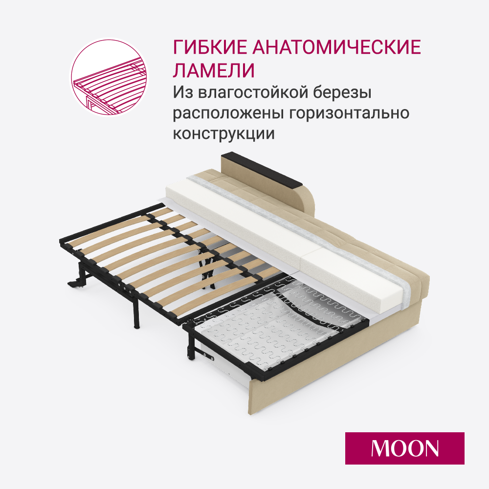 СохранитьДиван-кровать аккордеон, MOON FAMILY 144, бежевый велюр 164х106х90, спальное место 140х200 интересное: