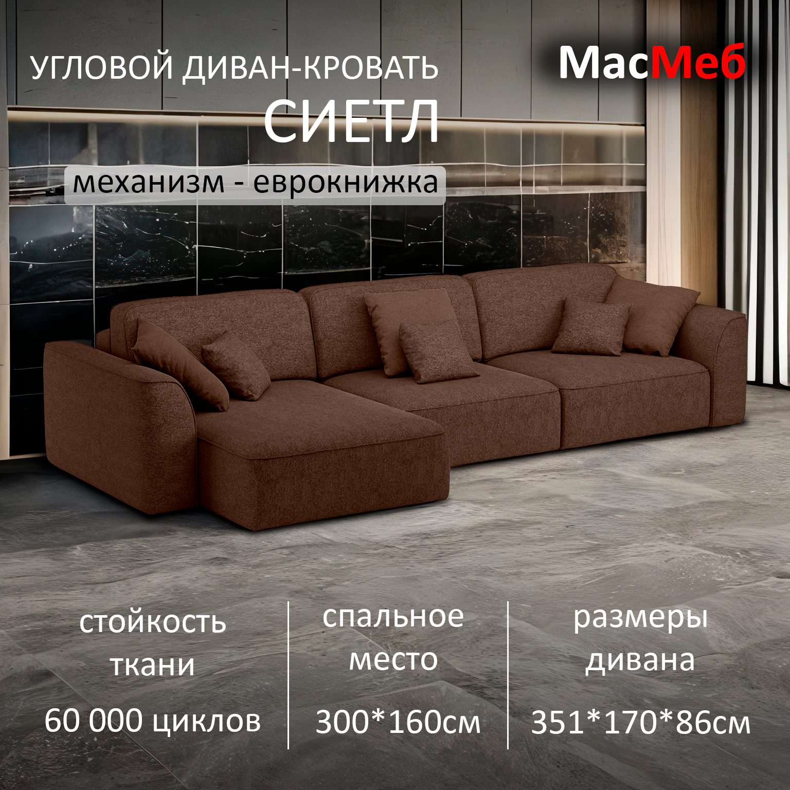 Ниже Вы можете прочитать отзывы на Диван угловой МасМеб Сиетл, цвет коричневый, Левый угол, еврокнижка, ознакомится с подробными характеристиками, посмотреть интересные обзоры и фотографии на Диван угловой МасМеб Сиетл, цвет коричневый, Левый угол, еврокнижка.