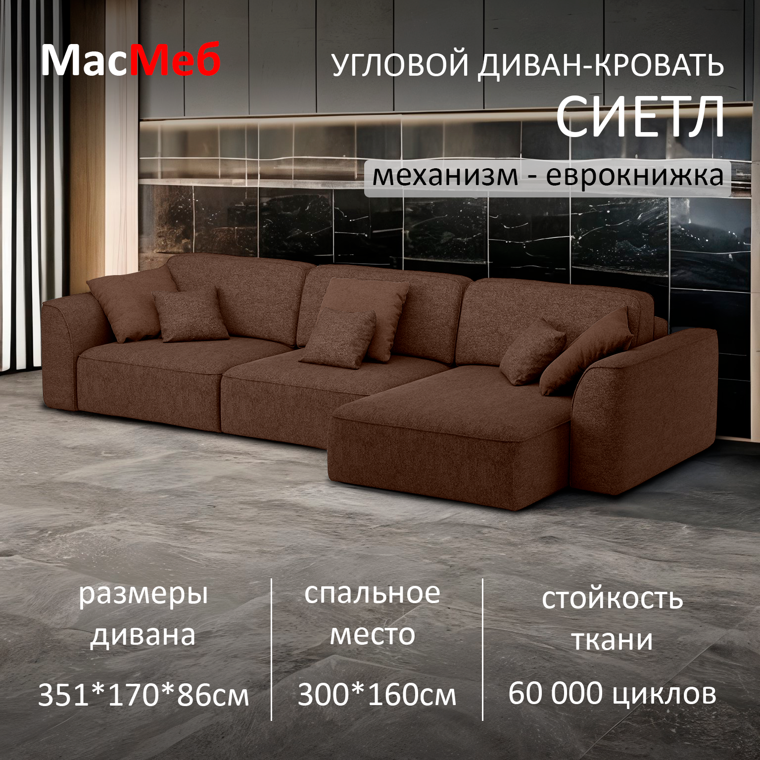 Ниже Вы можете прочитать отзывы на Диван угловой МасМеб Сиетл, цвет коричневый, Правый угол, еврокнижка, ознакомится с подробными характеристиками, посмотреть интересные обзоры и фотографии на Диван угловой МасМеб Сиетл, цвет коричневый, Правый угол, еврокнижка.