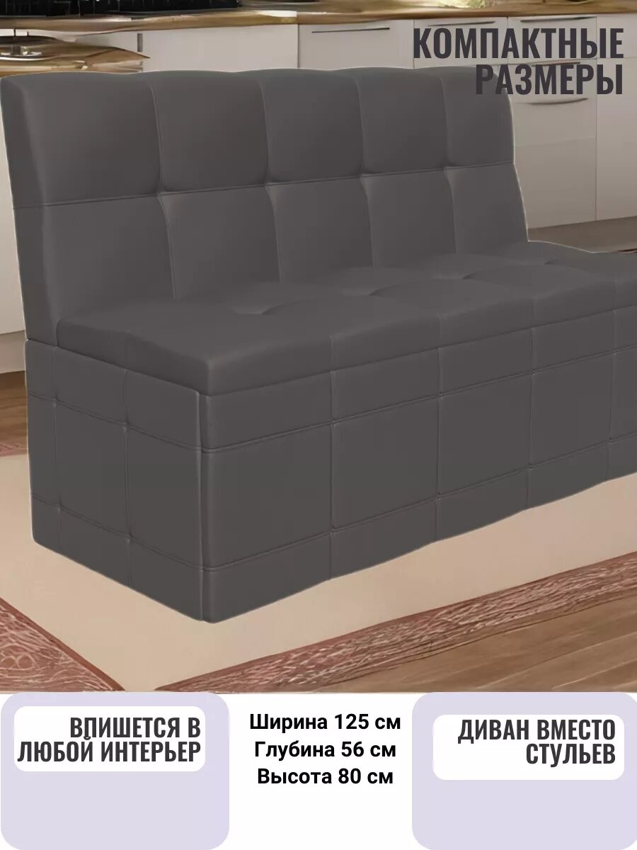 Диван кухонный K-home "Квадро", 125 см, кожзам серый интересное: