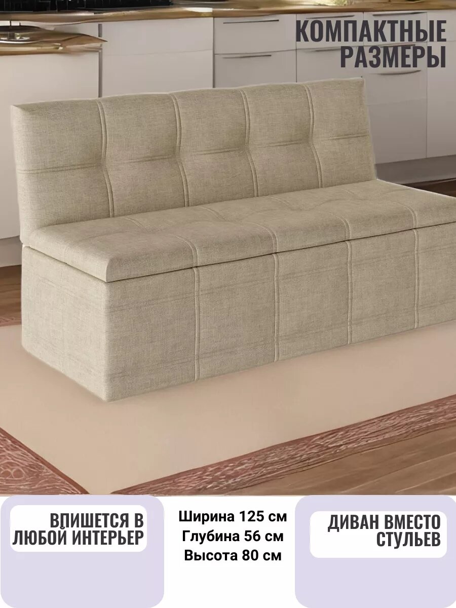 Диван кухонный с местом для хранения K-home "Квадро", 125 см, экокожа бежевая