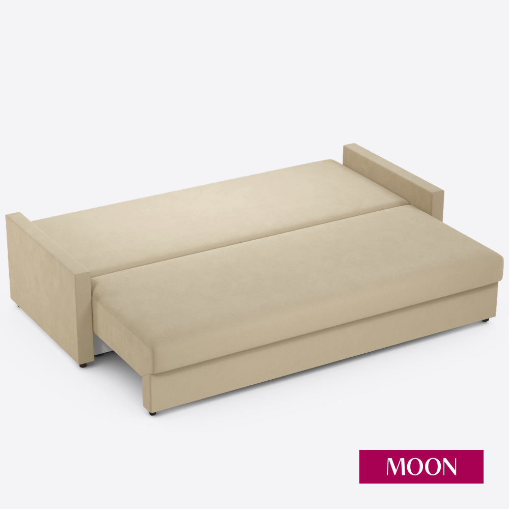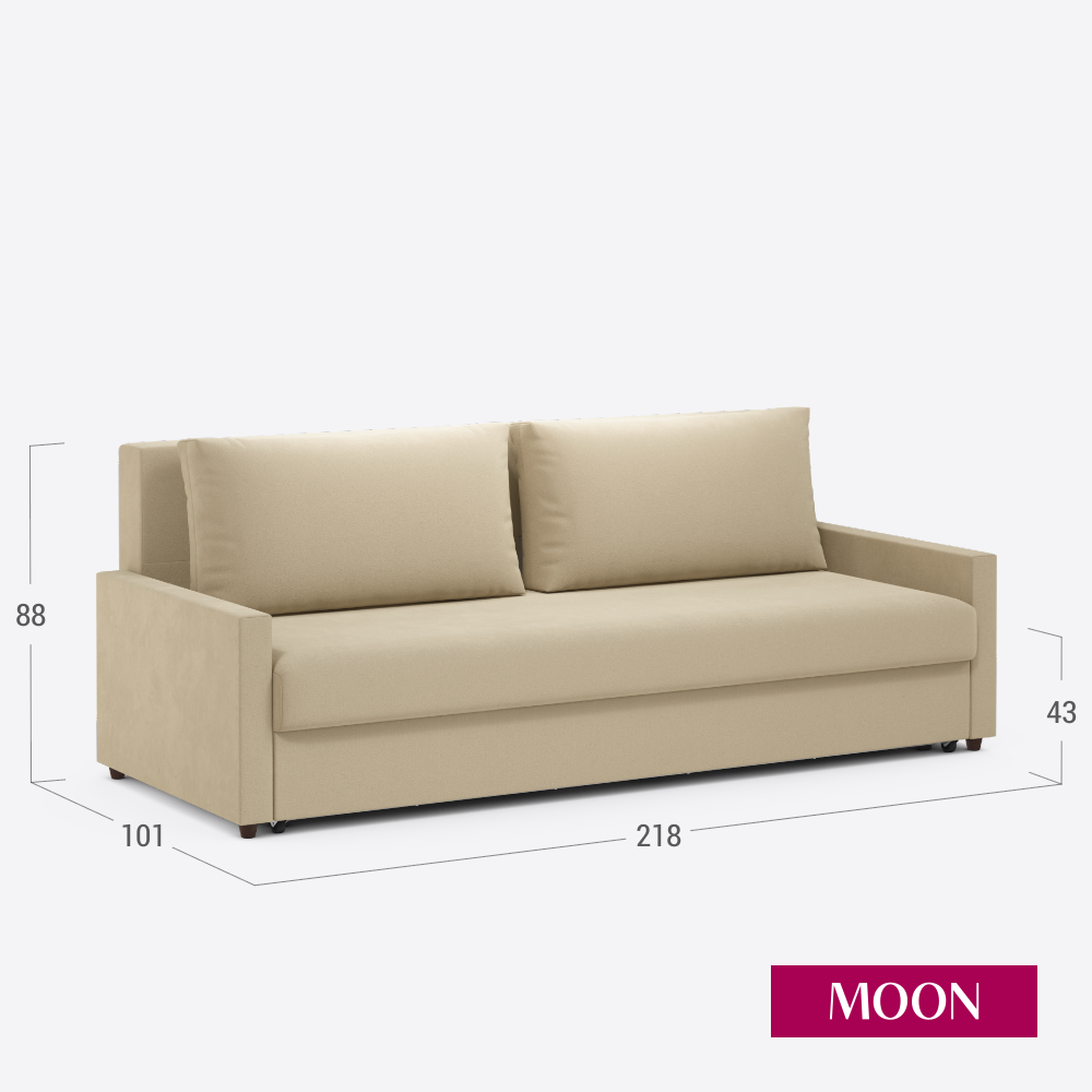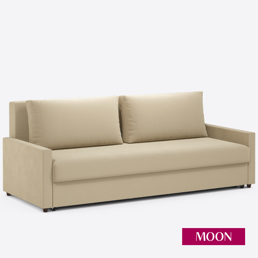 Купить Диван-кровать прямой, раскладной, еврокнижка MOON FAMILY 133, бежевый велюр, 218х101х88 см
