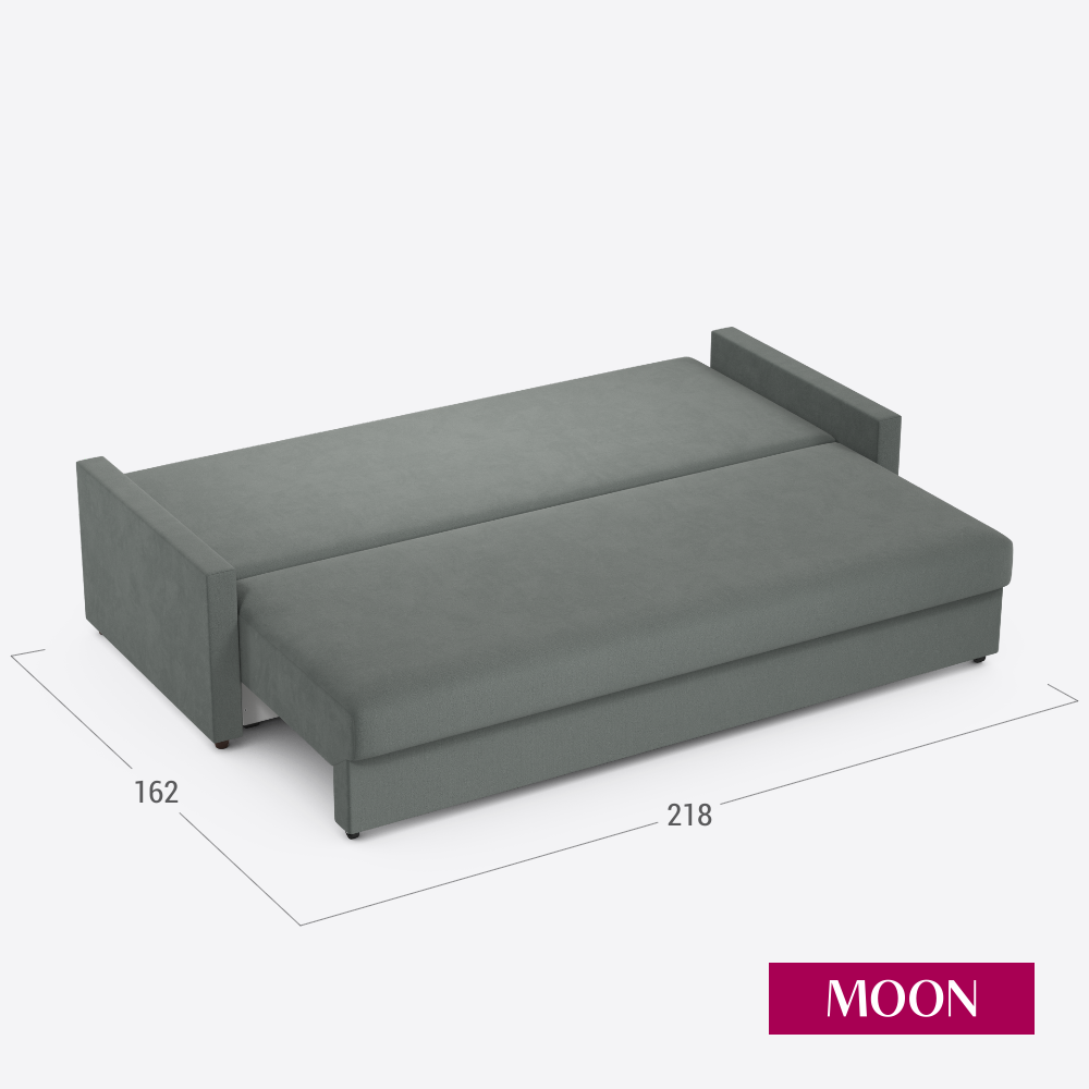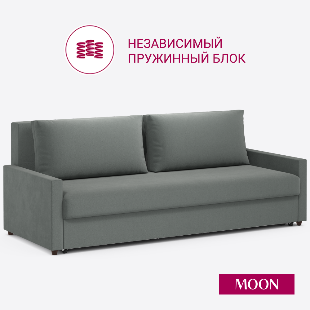 Купить Диван-кровать прямой, раскладной, еврокнижка MOON FAMILY 133, серый велюр, 218х101х88 см