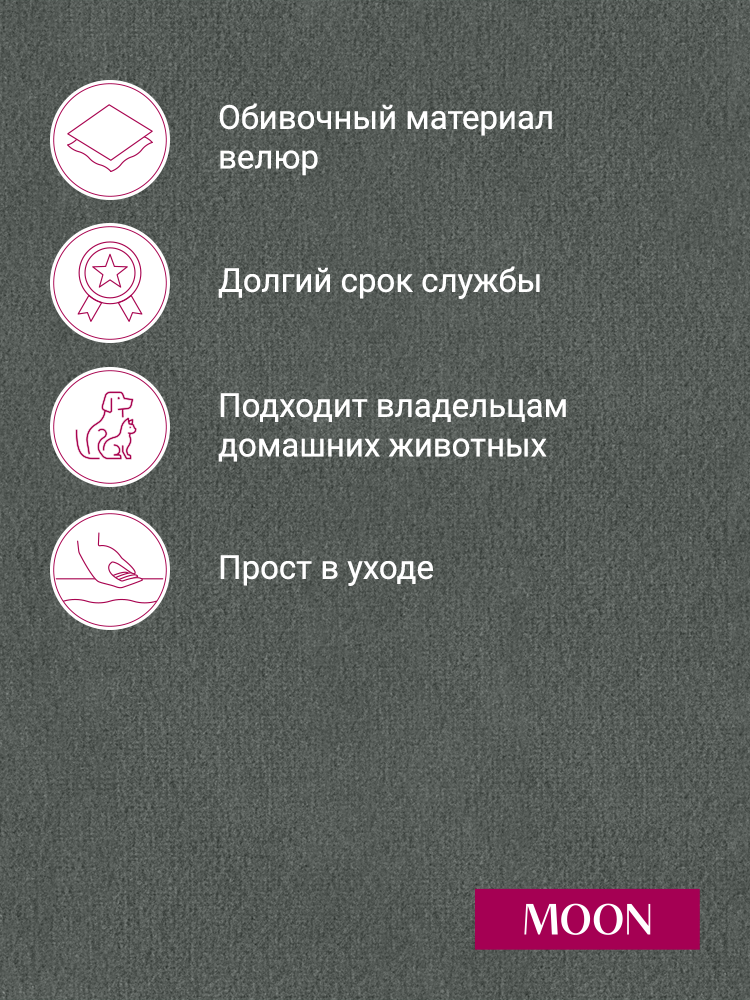 СохранитьДиван-кровать прямой, раскладной, еврокнижка MOON FAMILY 133, серый велюр, 218х101х88 см интересное: