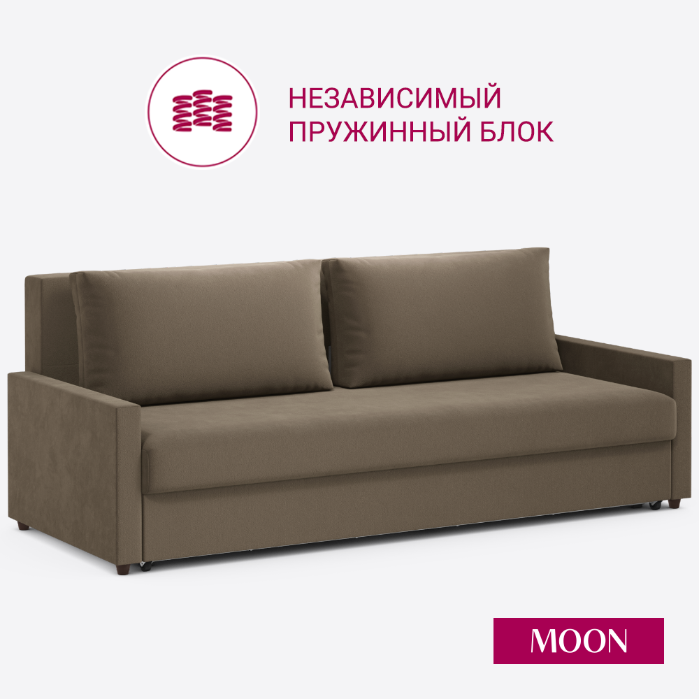 Купить Диван-кровать прямой, раскладной, еврокнижка MOON FAMILY133, коричневый велюр, 218х101х88 см