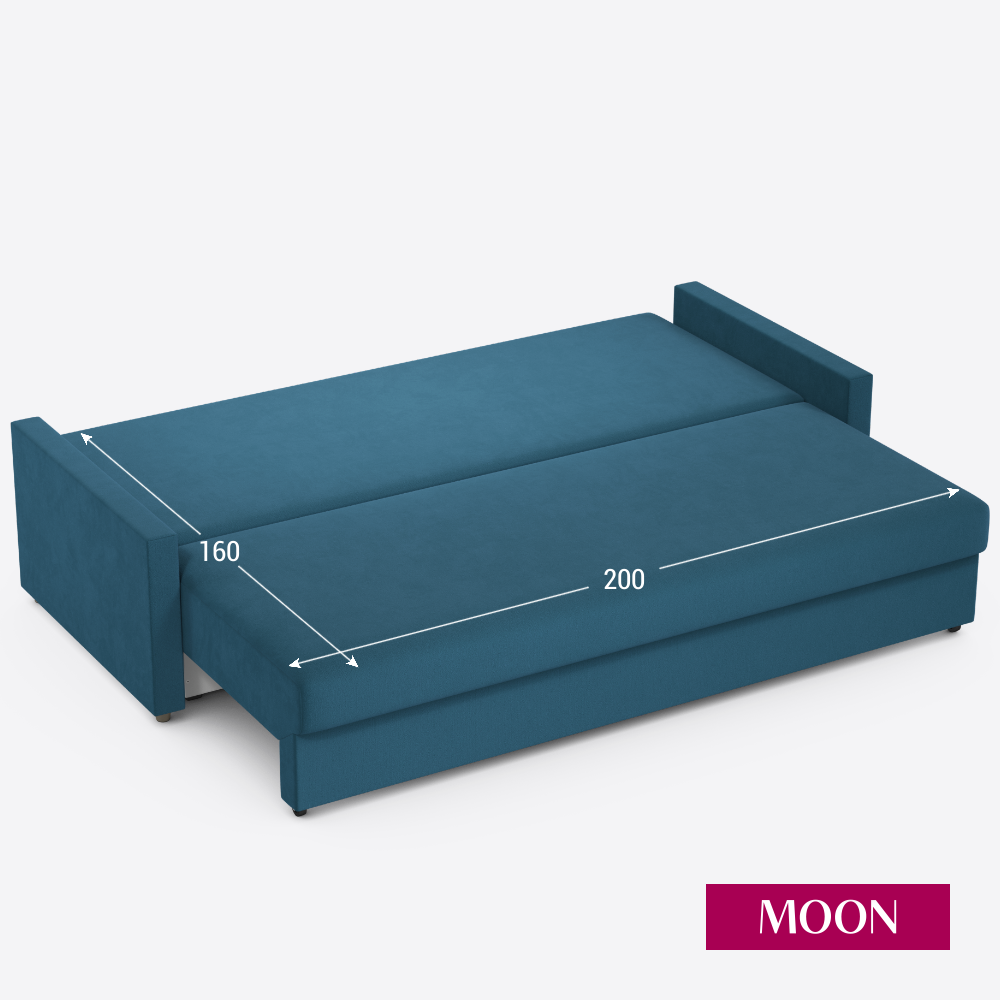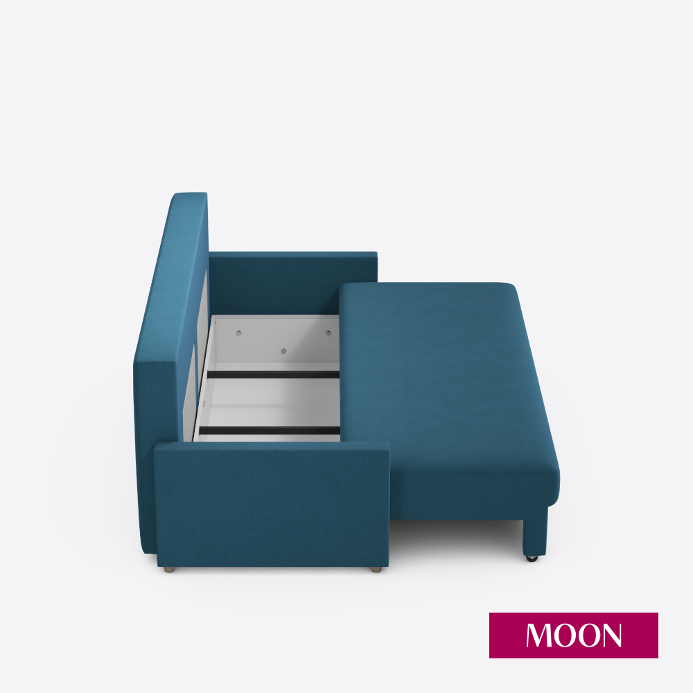 Купить Диван-кровать прямой, раскладной, еврокнижка MOON FAMILY 133, синий велюр, 218х101х88 см