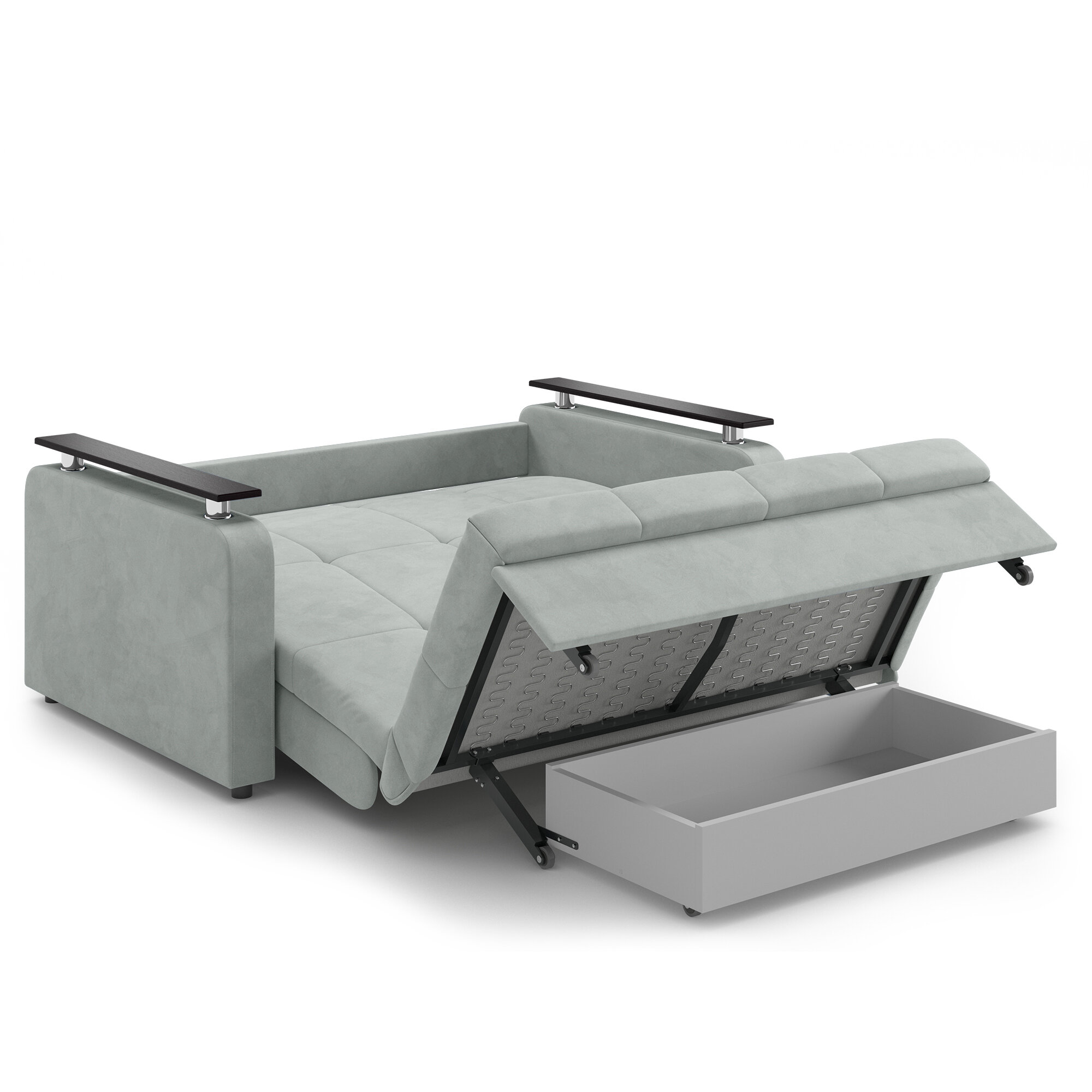 Купить Диван-кровать с ящиком раскладной Прямой на металлокаркасе, Аккордеон, ортопедический 140х200 Остин велюр светло-серый