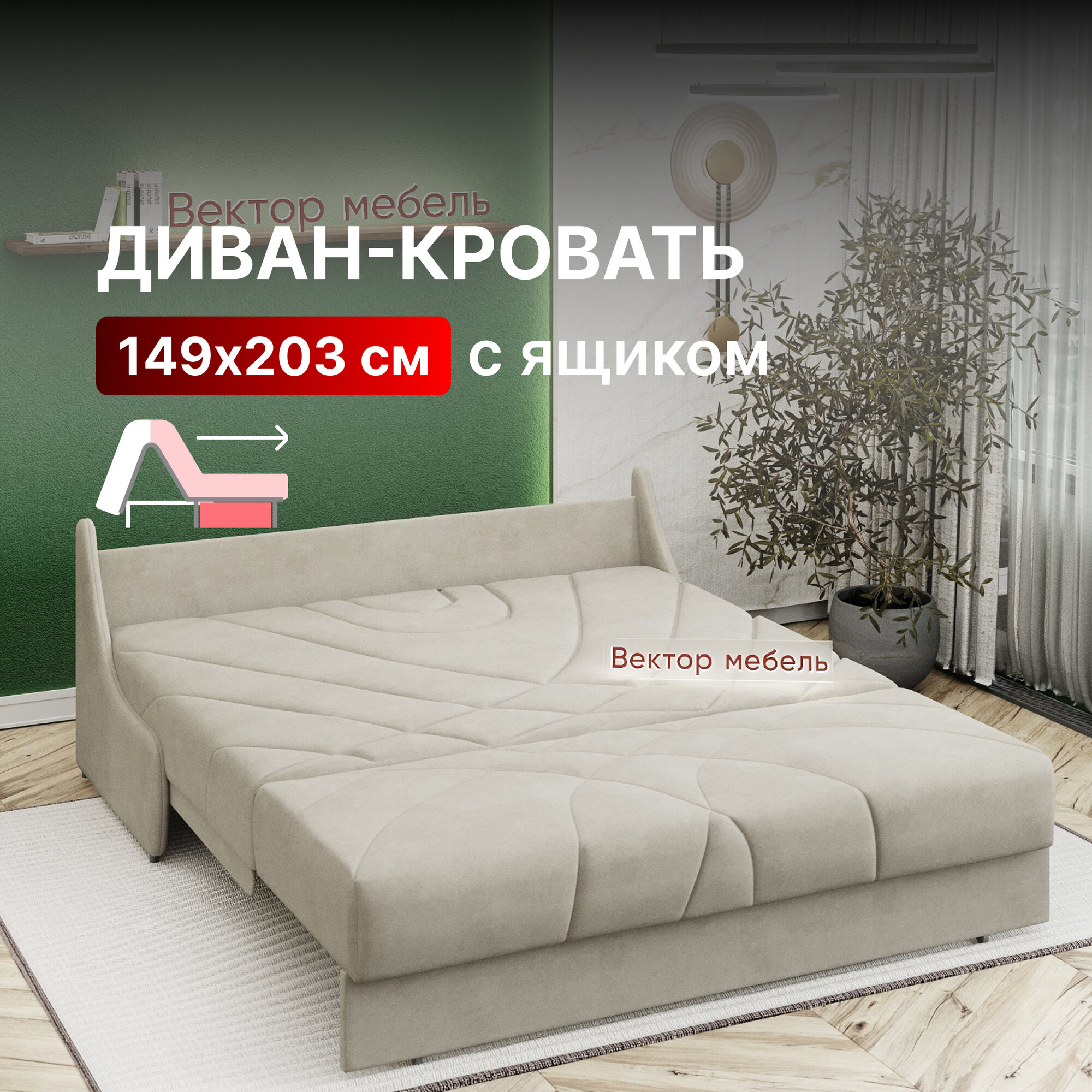 Купить Диван-кровать с ящиком аккордеон на металлокаркасе бежевый 150х200 бежевый Клайд