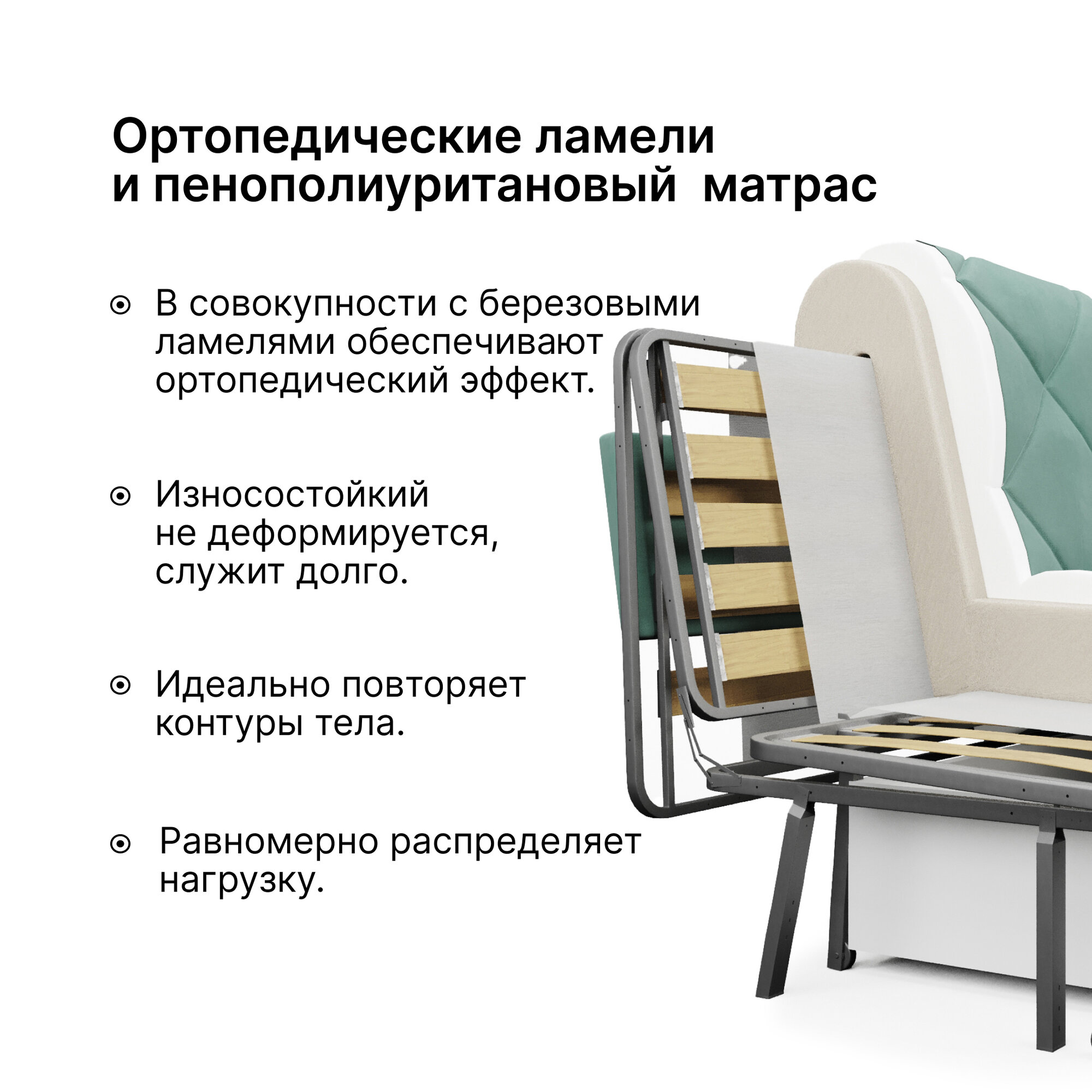 СохранитьДиван-кровать с ящиком аккордеон на металлокаркасе мятный 150х200 Клайд интересное: