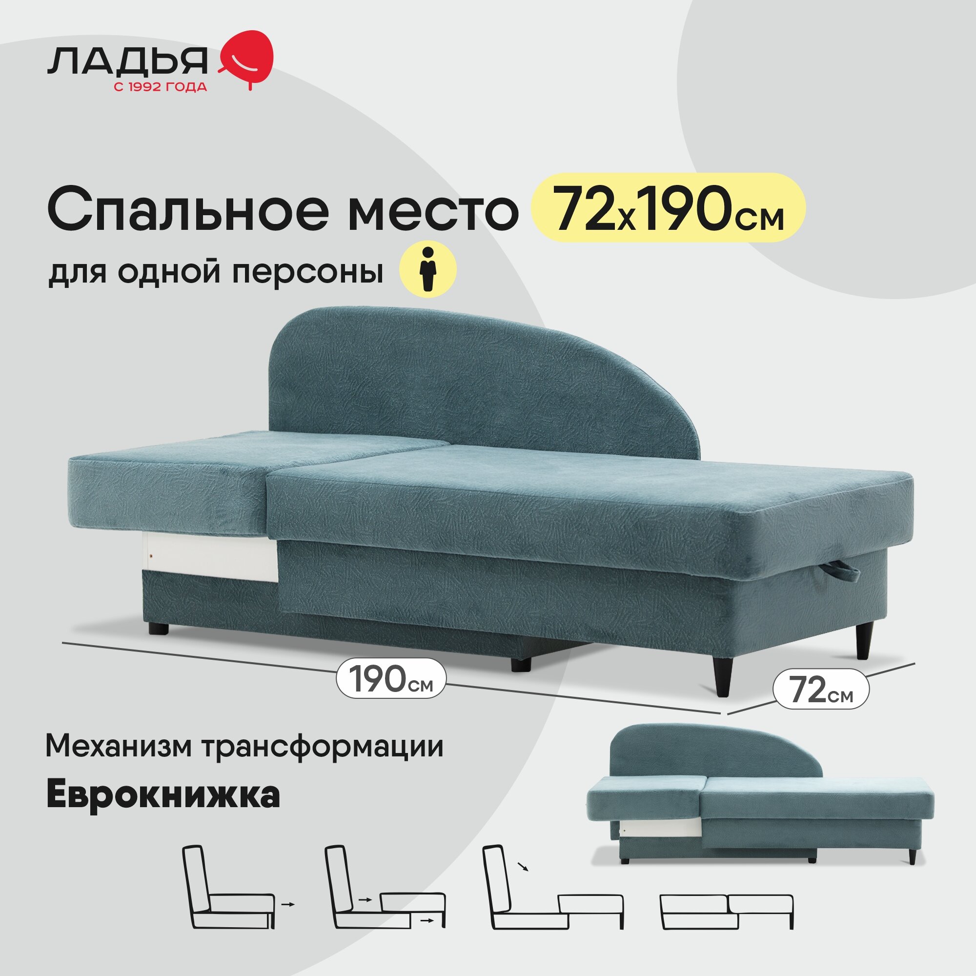 Ниже Вы можете прочитать отзывы на Кушетка Иби , Еврокнижка, размер 147х76х77 см, спальное место:190х72см, левый, Dazzle Mint, ознакомится с подробными характеристиками, посмотреть интересные обзоры и фотографии на Кушетка Иби , Еврокнижка, размер 147х76х77 см, спальное место:190х72см, левый, Dazzle Mint.